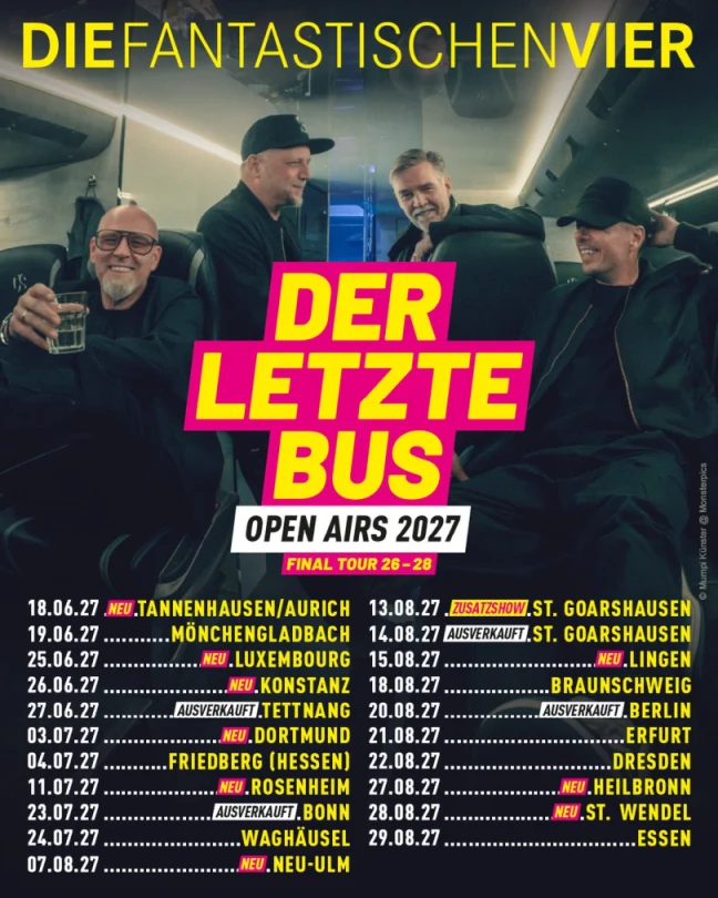 Der letzte Bus – so wird die Tour der Fantastischen Vier, kurz Fanta 4, heißen. Und sie wird eine Weile dauern.