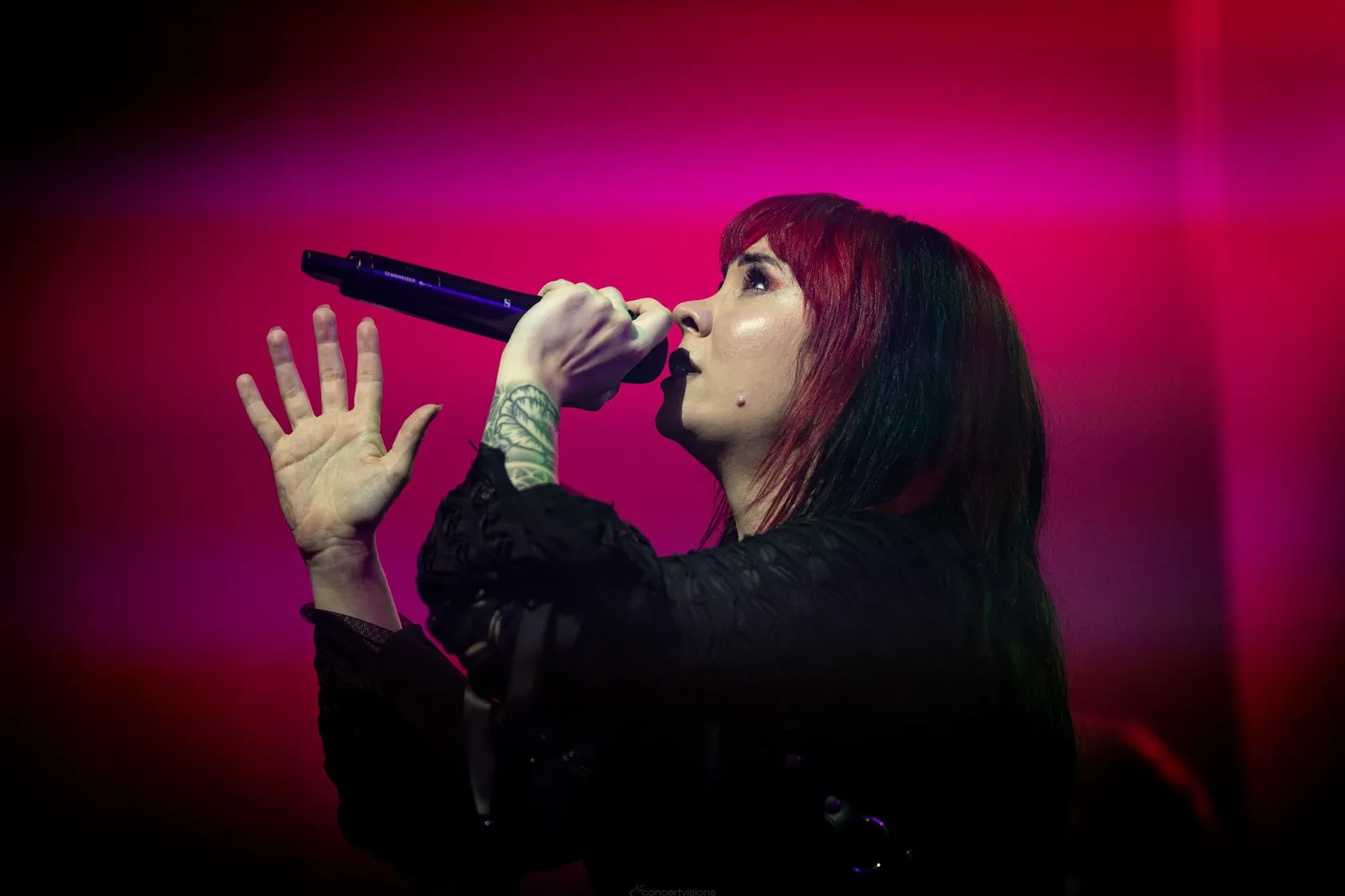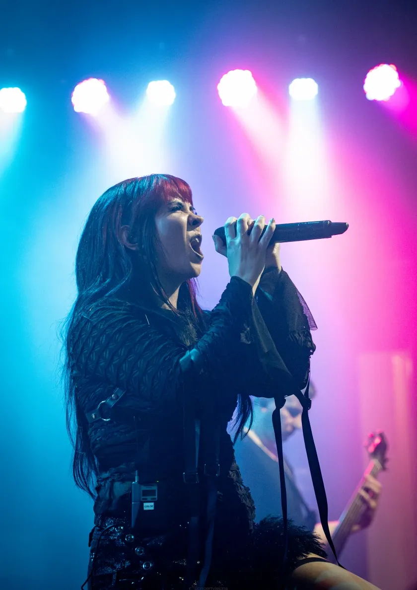 Songs wie „Chemicals“, „Limits“ und auch „Voices“ kamen gut beim Publikum an und Skarlett Riot bewiesen einmal mehr, dass sie live absolut hörens- und sehenswert sind. Wer wollte, konnte nach dem Auftritt noch zum Merch, um einen kleinen Plausch mit der Band zu halten und/oder natürlich auch, um noch ein Foto oder Autogramm zu ergattern. Die Fans, die das Angebot wahrnahmen, reisten sogar weit an, um die drei Female-Fronted-Bands am Donnerstagabend live zu sehen. Das beeindruckte Chloe sichtlich.