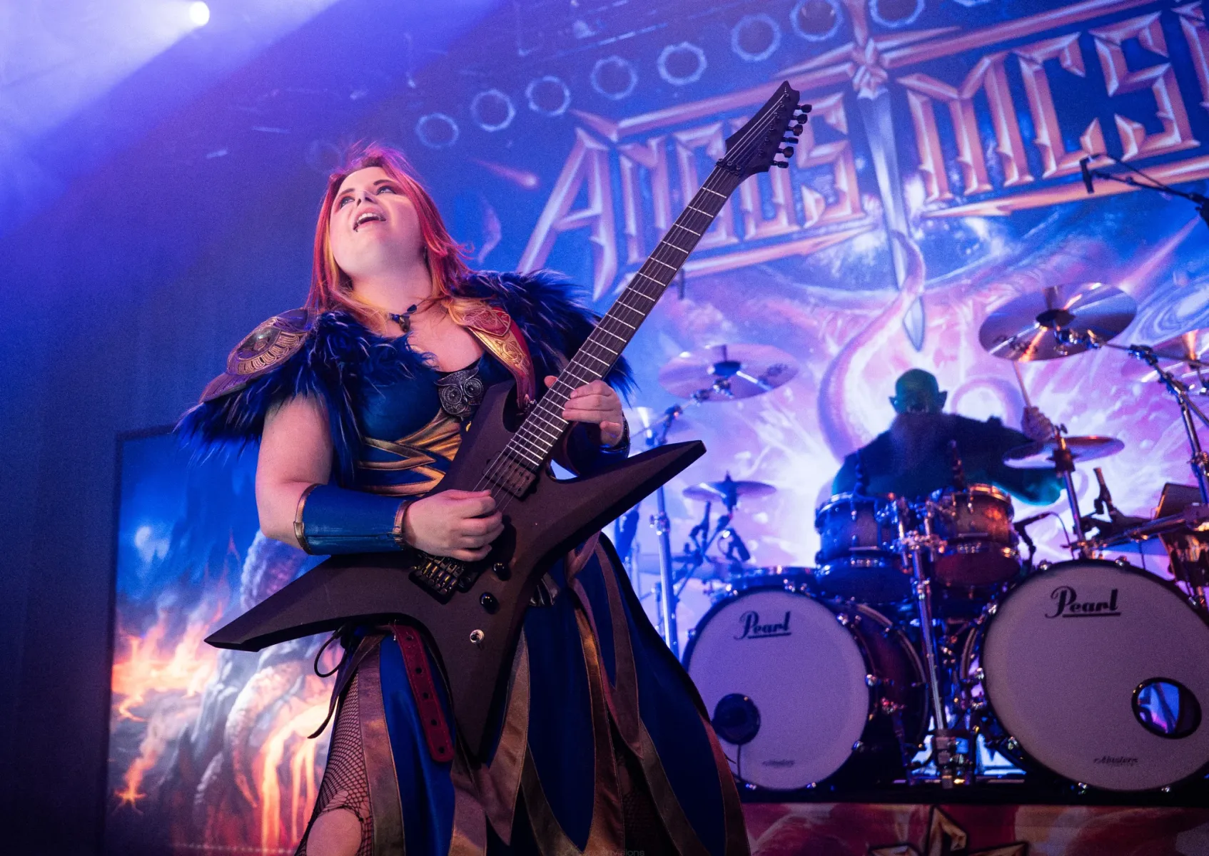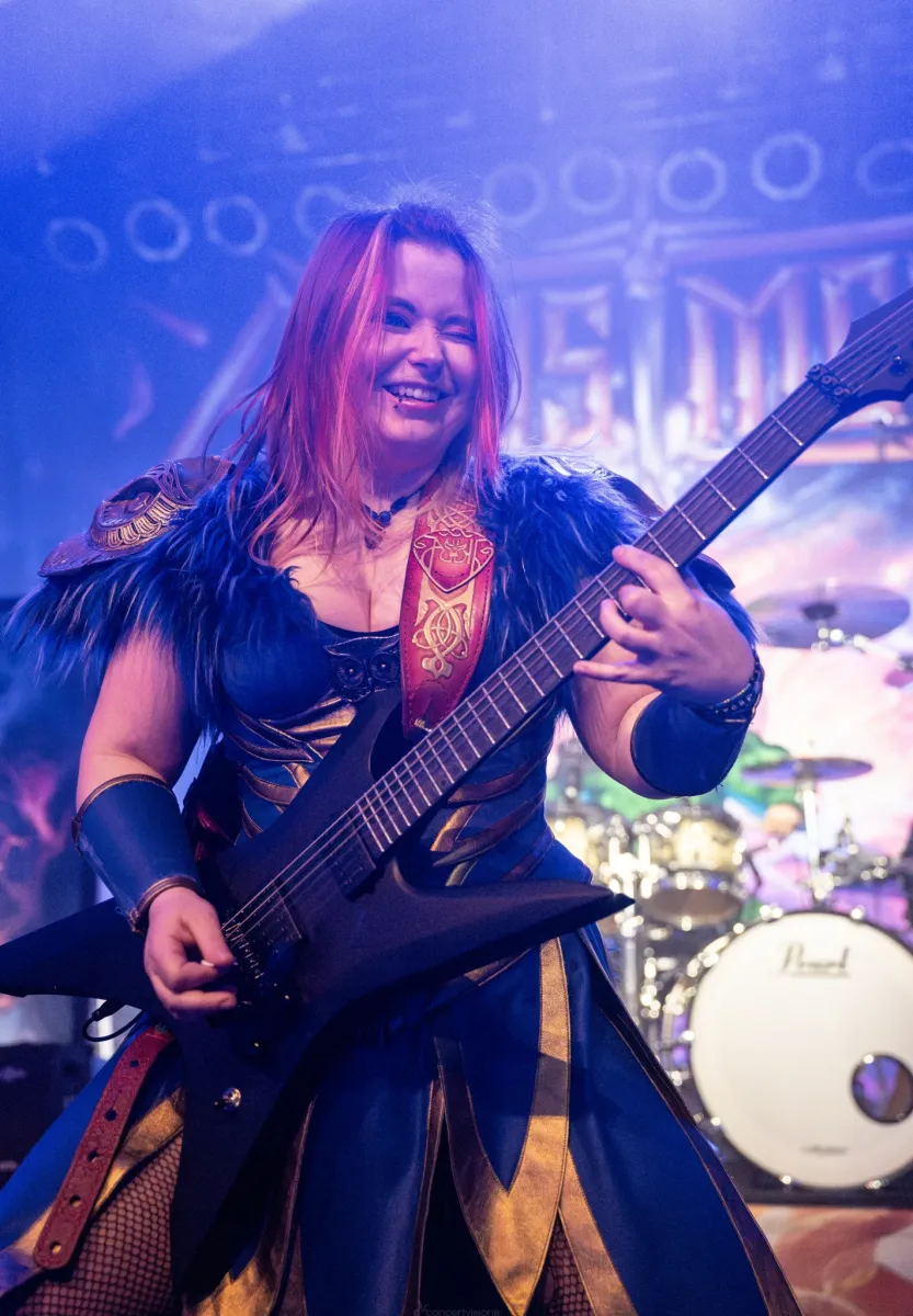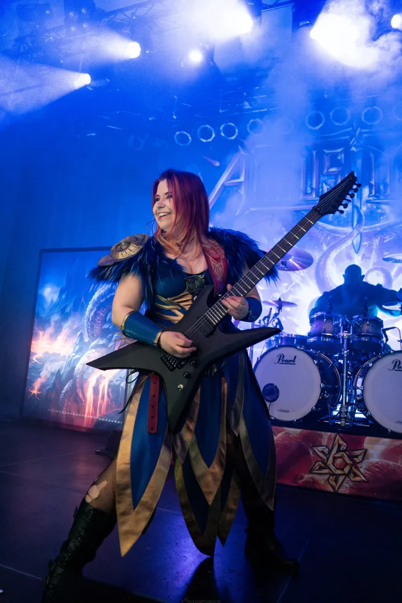 Auch wenn ihr bei einer Angus McSix Show natürlich in den kleinen Clubs keine riesigen LED Leinwände erwarten könnt. Die Kostüme und die ganze Show rund um die Musik können sich auf jeden Fall sehen lassen, wenn man diese Art von Musik mag. In Heidelberg war ganz klar – das kommt an! Auch wenn Gitarristin Thalia Bellazecca aktuell nicht dabei ist. Jasmin Pabst macht ihren Job an der Gitarre ebenfalls brillant! Fans der Szene und dieser Musik werden den sympathischen Wirbelwind von „Böse Fuchs“ oder auch „All For Metal“ bereits kennen.