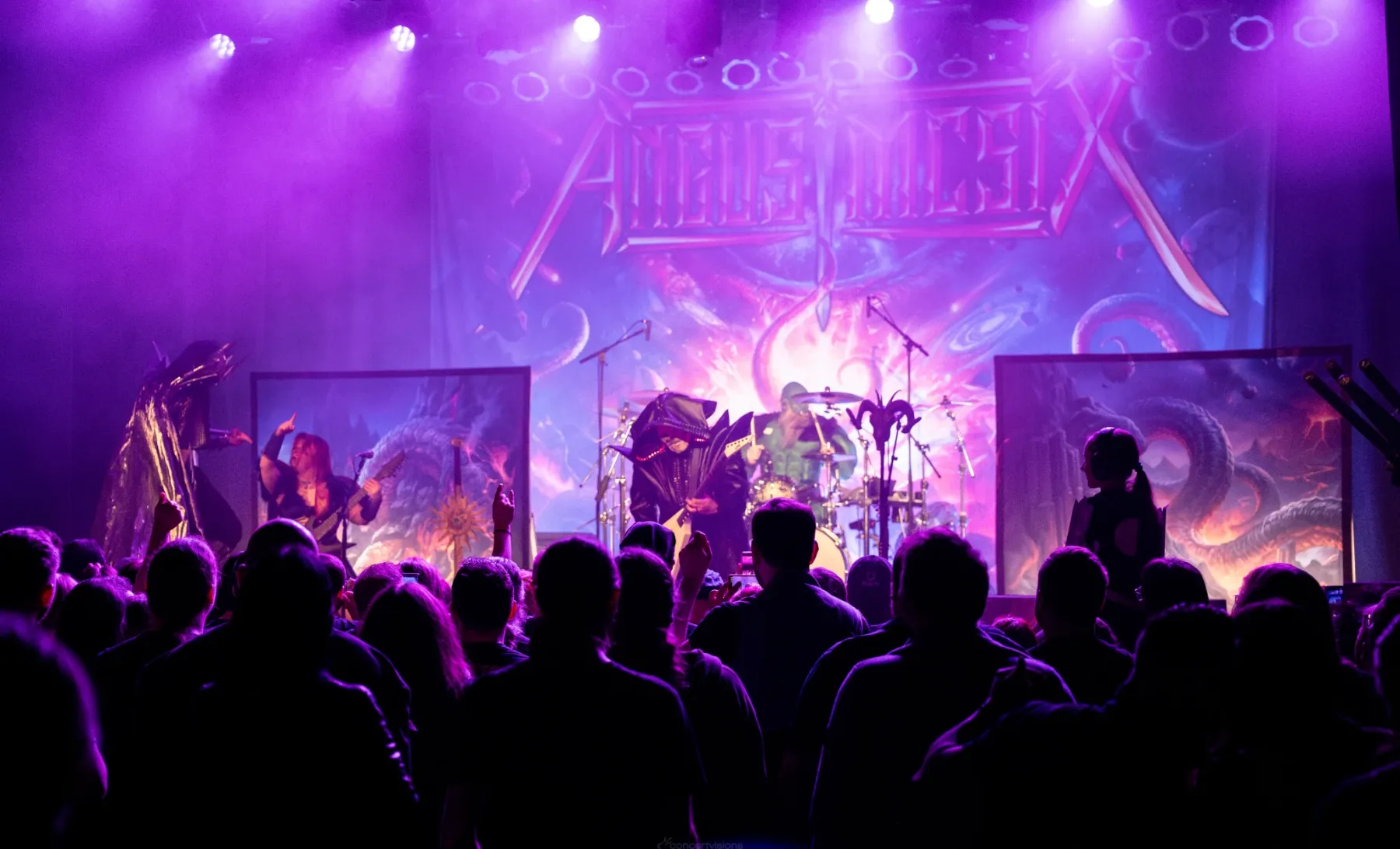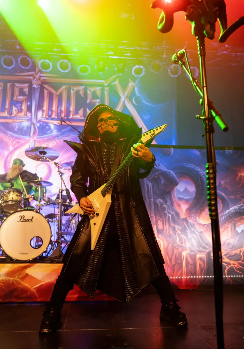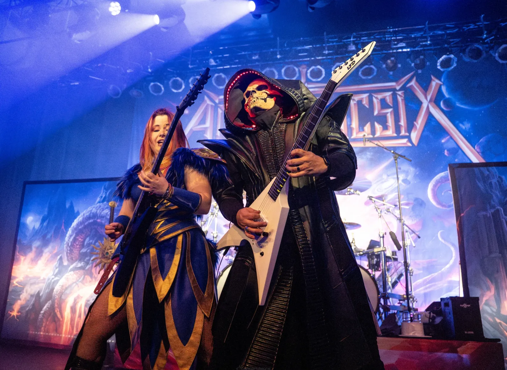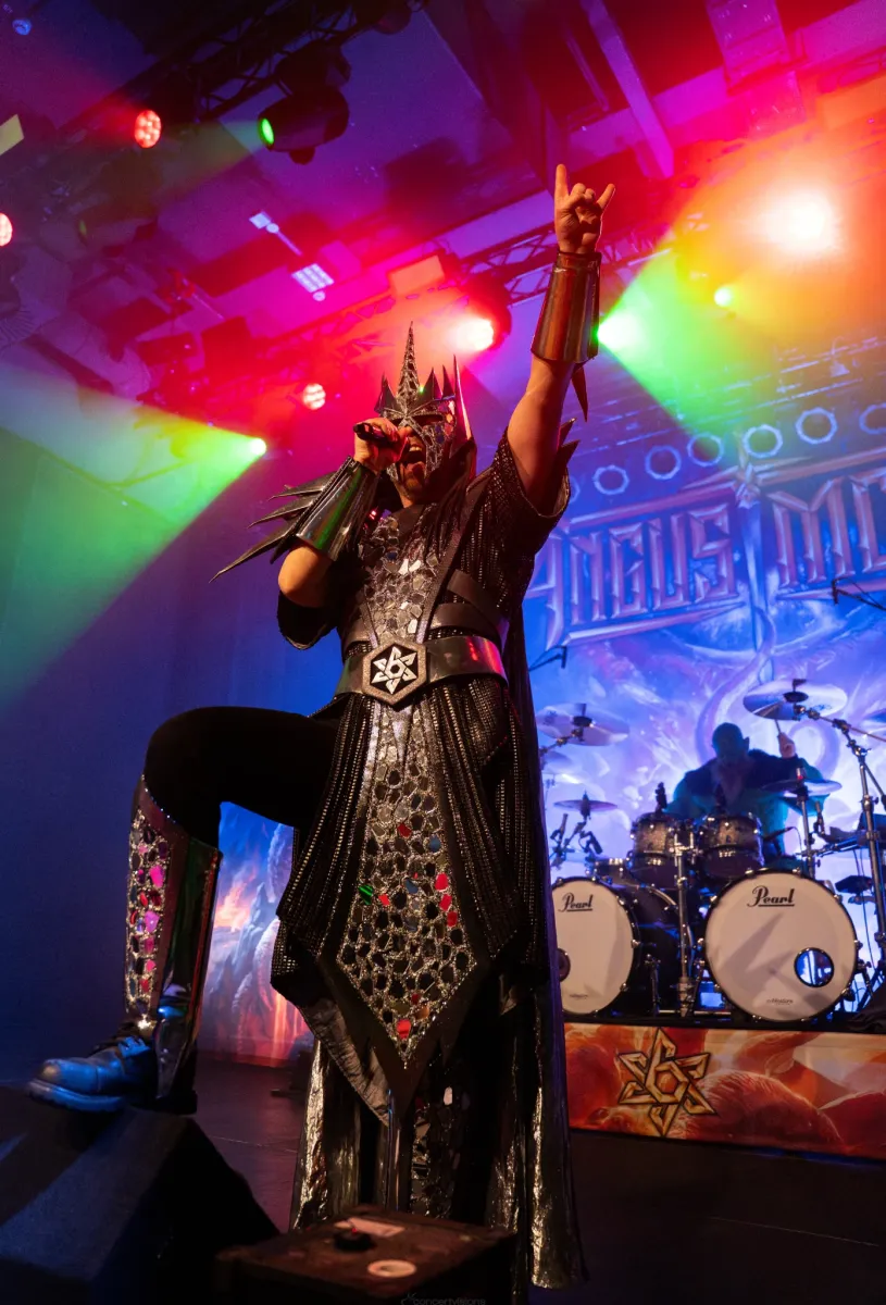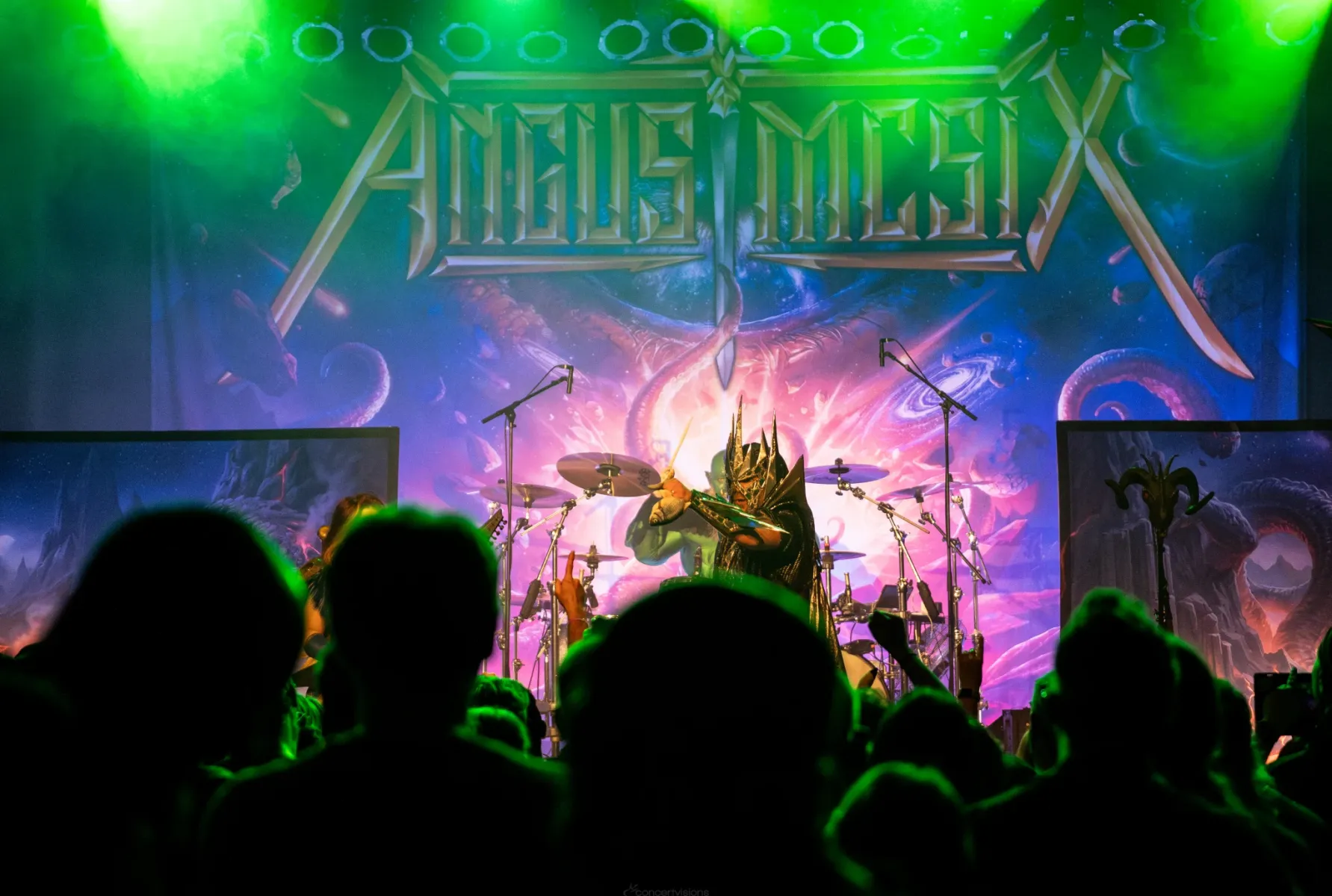 Dass der Wochentag für eine Party in Konzertform inzwischen keine Rolle mehr spielt, wissen wir spätestens seit dem auch Arena-Shows an Montagen ausverkauft sind. Auch wenn der Publikumsandrang in Heidelberg überschaubar war – die Stimmung war nach wie vor beim Auftritt von Angus McSix bestens! Auch wenn die noch recht junge Band (geründet 2021 von ex-Gloryhammer-Frontmann Thomas Winkler und seinen Mitmusikern) inzwischen immer mal mit andere Besetzung auf der Bühne steht – der Power Metal steht nach wie vor im Vordergrund und kann sich live wie auch auf Platte hören – und durch die Bühnenshow auch sehen lassen.
