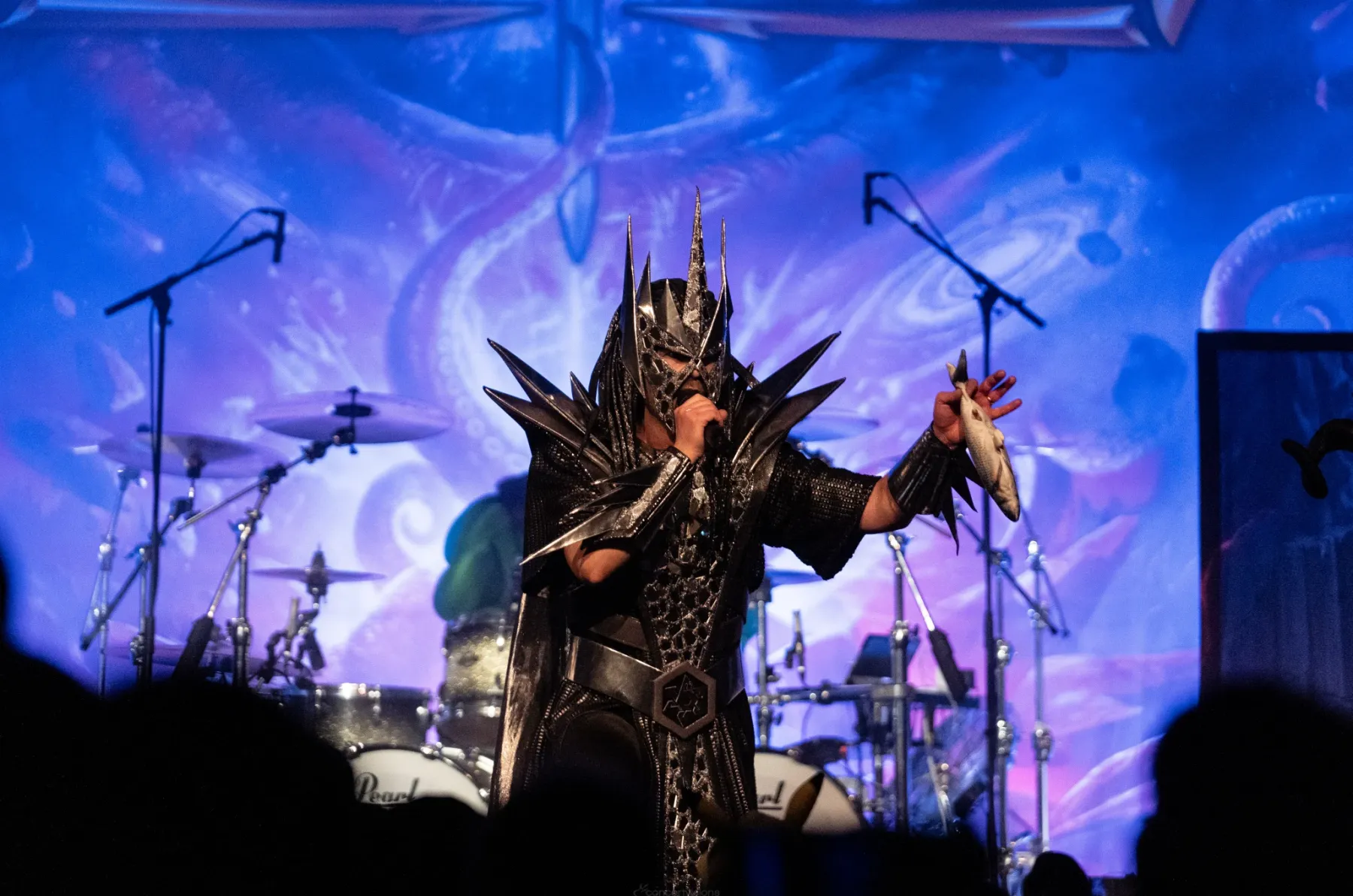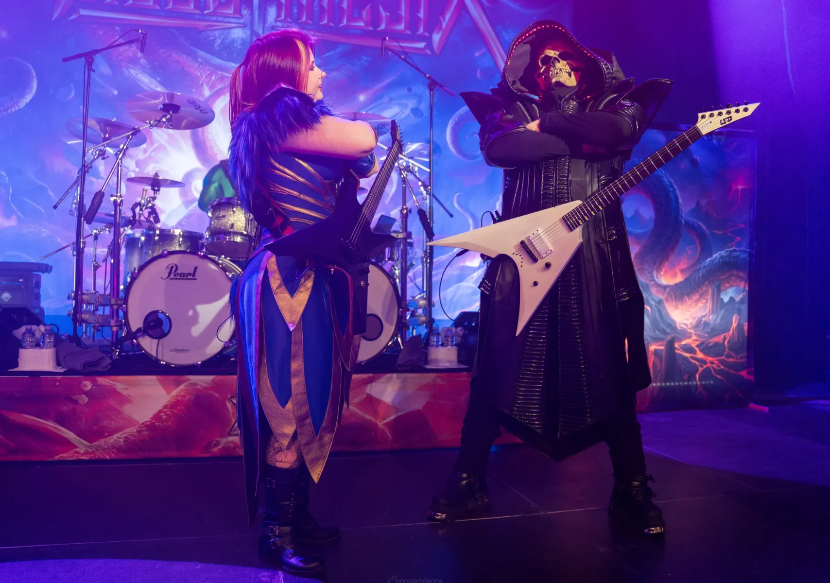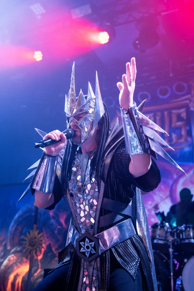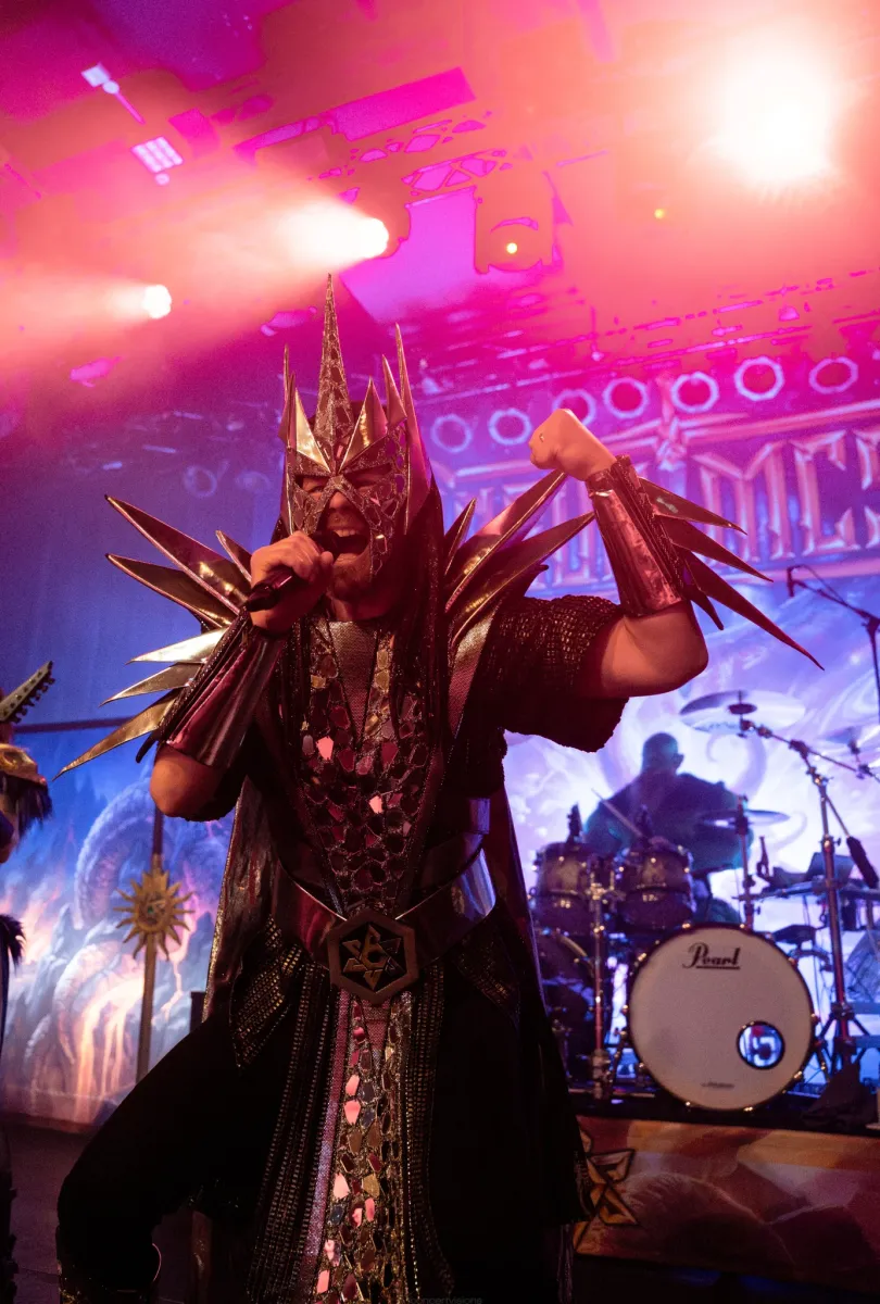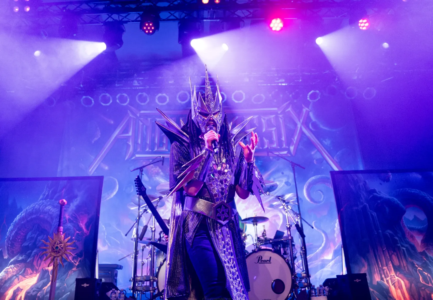 Dass der Wochentag für eine Party in Konzertform inzwischen keine Rolle mehr spielt, wissen wir spätestens seit dem auch Arena-Shows an Montagen ausverkauft sind. Auch wenn der Publikumsandrang in Heidelberg überschaubar war – die Stimmung war nach wie vor beim Auftritt von Angus McSix bestens! Auch wenn die noch recht junge Band (geründet 2021 von ex-Gloryhammer-Frontmann Thomas Winkler und seinen Mitmusikern) inzwischen immer mal mit andere Besetzung auf der Bühne steht – der Power Metal steht nach wie vor im Vordergrund und kann sich live wie auch auf Platte hören – und durch die Bühnenshow auch sehen lassen.