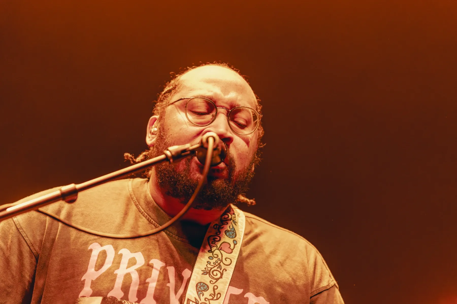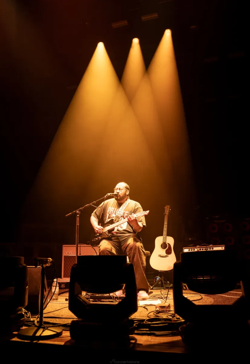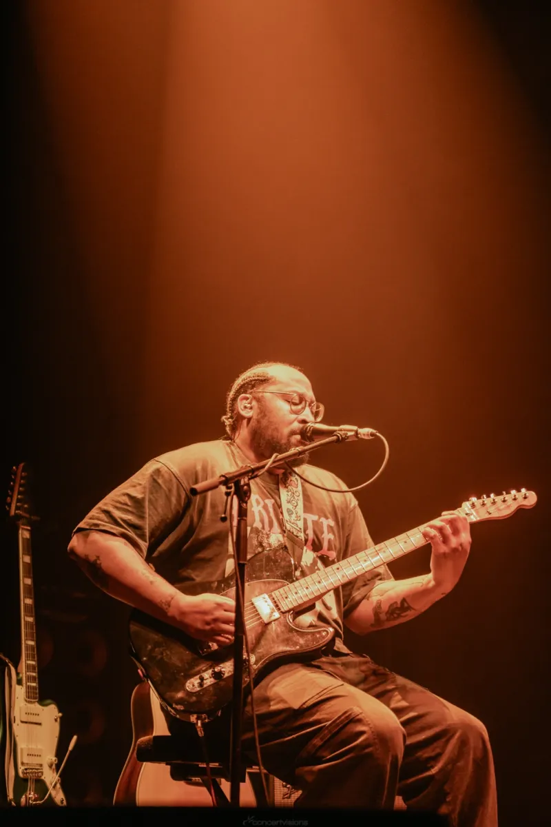 Nur mit seiner E-Gitarre und seiner Stimme „bewaffnet“ nahm der US-Amerikaner Bartees auf einem Stuhl Platz und ließ sich von ein paar Scheinwerfern ausleuchten. Den Rest seines Sets verharrte Bartees auch auf dem Stuhl und spielte sein eigenes, ruhiges und teilweise auch durchaus energiegeladenes Set. Das Publikum, welches zu diesem Zeitpunkt bereits zahlreich erschienen war, lauscht den Klängen aufmerksam und nahm Strange auch seinen kleinen Vauxpas nicht übel, als er erzählte, dass er das erste Mal in Frankfurt sei. 😉
