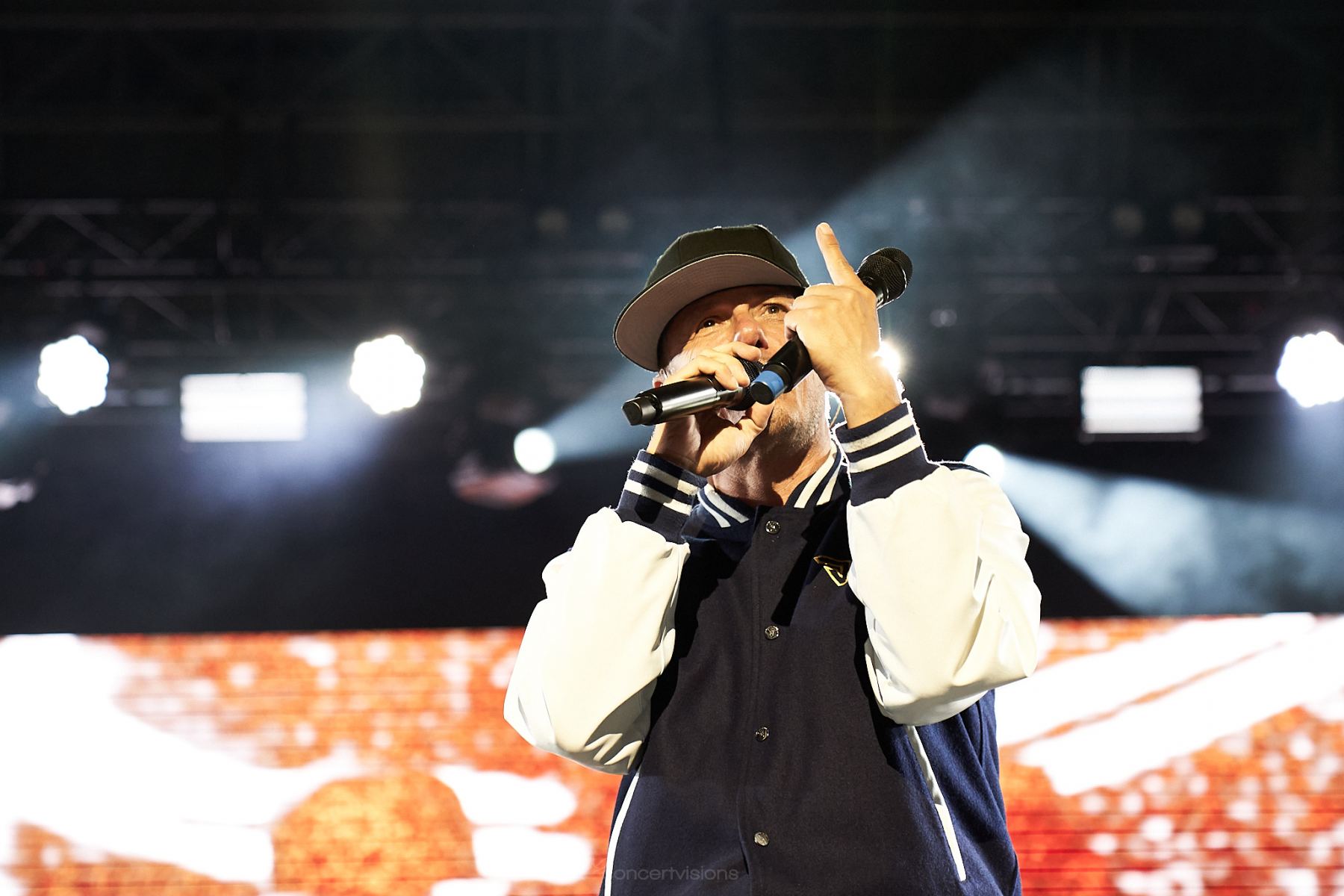 Nun aber erst einmal wieder zurück zum Freitagabend. Dieser wollte wettertechnisch erst einmal so gar nicht mitspielen. Petrus öffnete die Schleusen, aber konnte sie noch rechtzeitig zum Konzert der Fanta 4 wieder schließen. Auch wenn es dadurch ein wenig länger beim Einlass dauerte. Dem Kozert und der Stimmung tat diese keinen Abbruch! Bevor die Fantas auf die Bühne kamen, heizte DJ Thomilla dem Publikum schon einmal ordentlich ein.