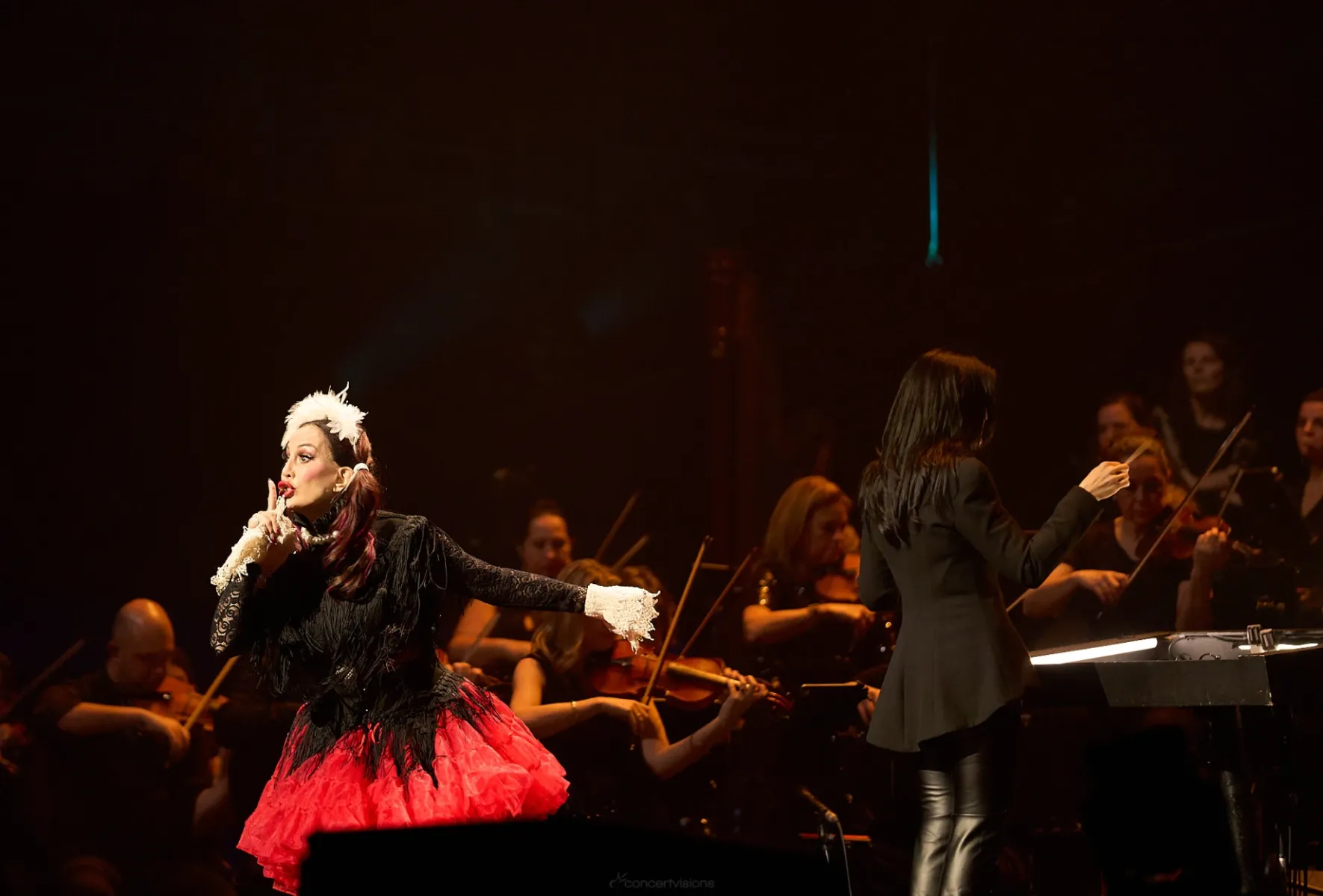 Untermalt wurde das Ganze zum einen durch die bereits angesprochenen Lichteffekte und zum anderen natürlich durch das Antwerp Symphony Orchestra unter der Leitung von Dirigentin Alexandra Arrieche. Wenn die Maestra und ihr Orchester rufen, dann stehen die Künstler:innen Schlange.