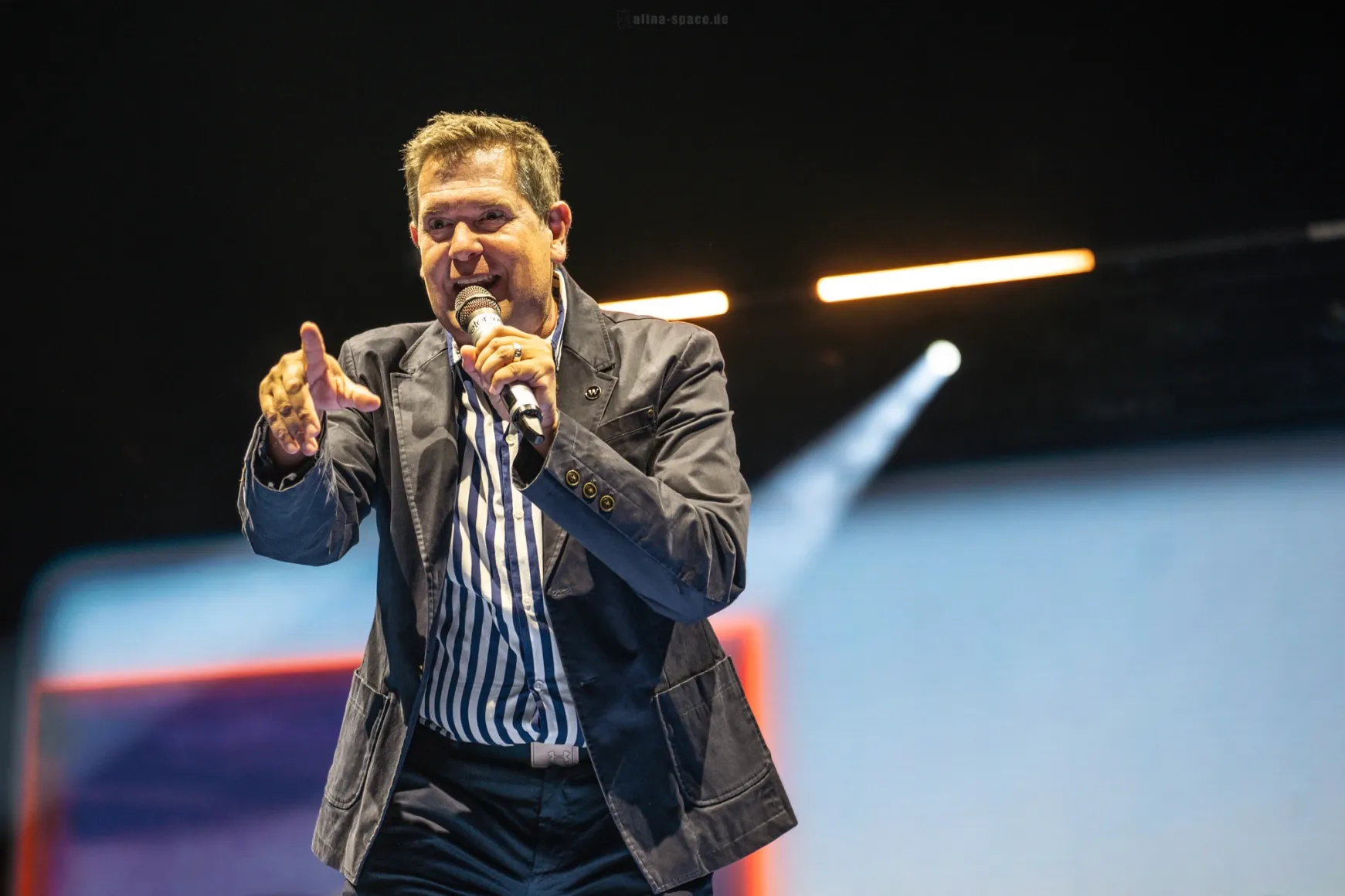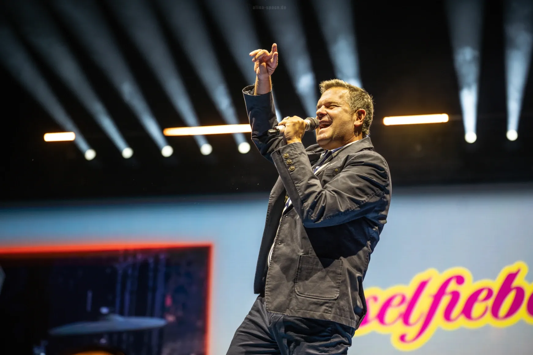 Mit einem Knall eröffnete Oli P. den Abend in der Mannheimer SAP Arena! Voller Energie und mit absolut bester Laune stürmte er die Bühne und riss das Publikum von Anfang an mit. Wer Oli und seine Energie kennt, der weiß, dass sich die gute Laune direkt auf alle Anwesenden im Raum überträgt. So sollte es auch in Mannheim sein.