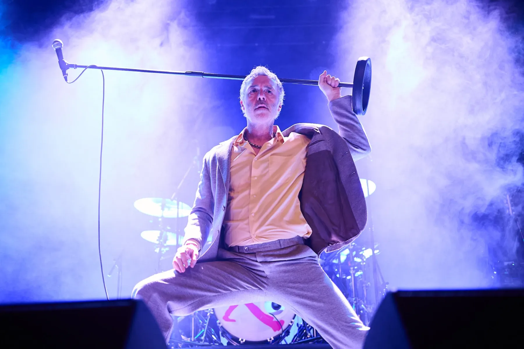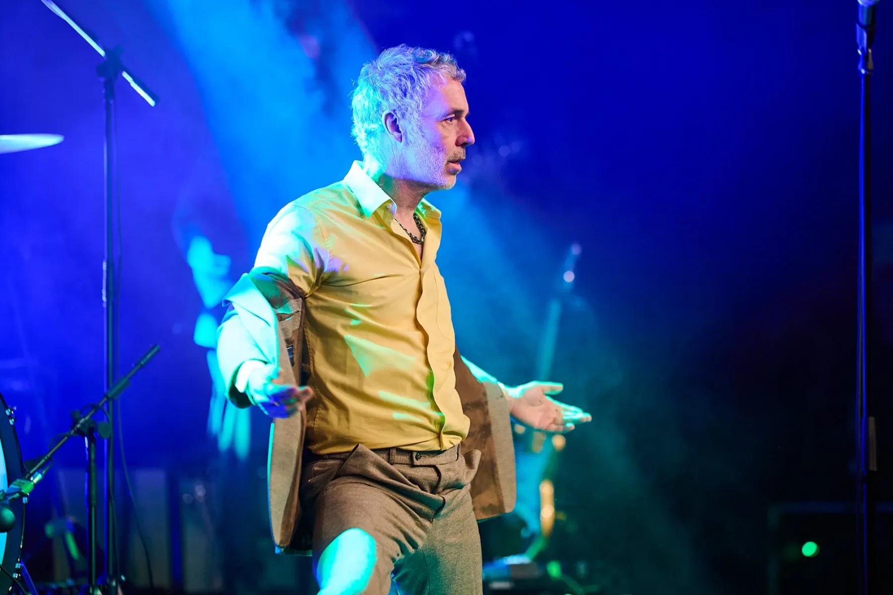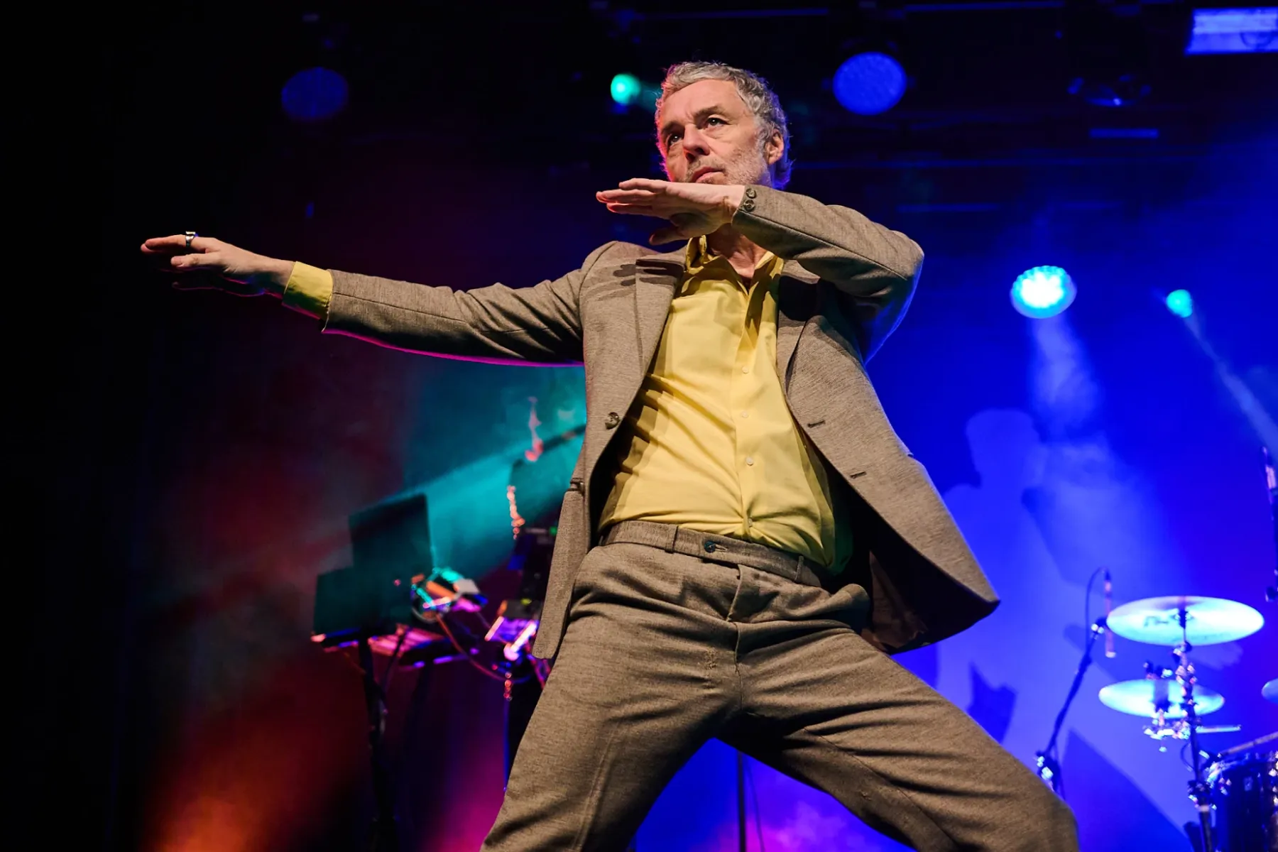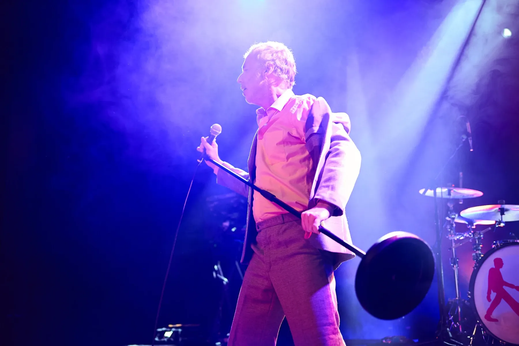 Zugegeben man musste sich auch ein bisschen auf den Fünfzigjährigen einlassen, aber spätestens bei den ersten Bässen von „Allbarone“ hatte er einen! Und als Dury dann auch noch mit schrägem Ausdruckstanz, hyperaktiven Bewegungen und wilden Grimassen über die Bühne sprang, musste man einfach begeistert tanzen.
