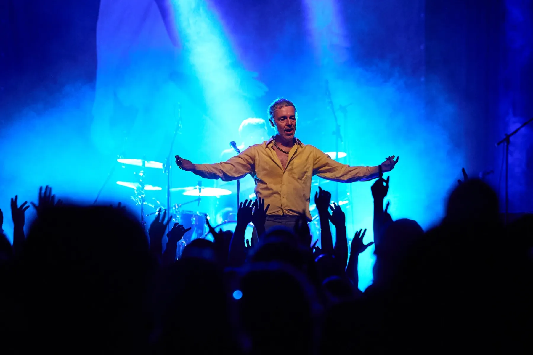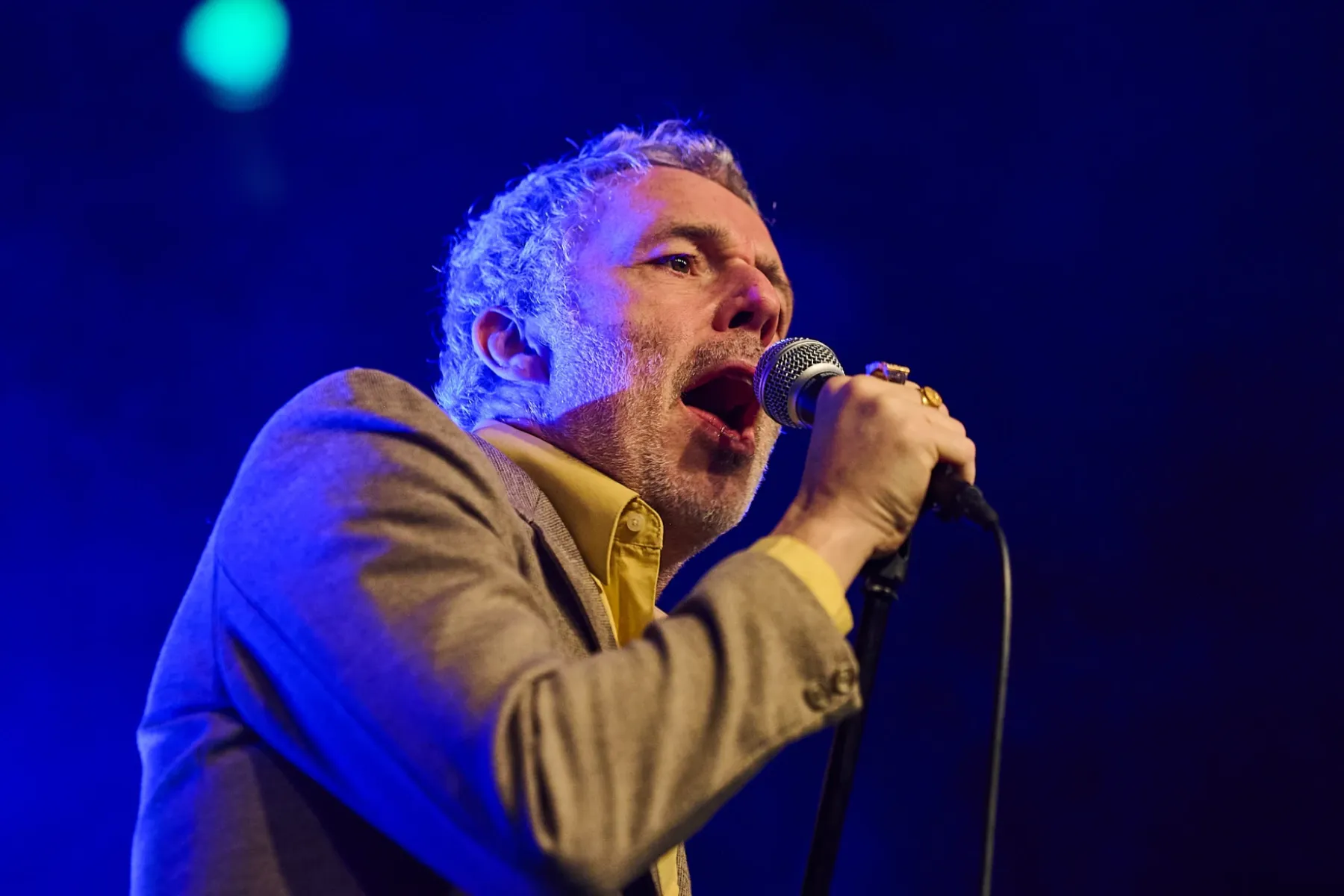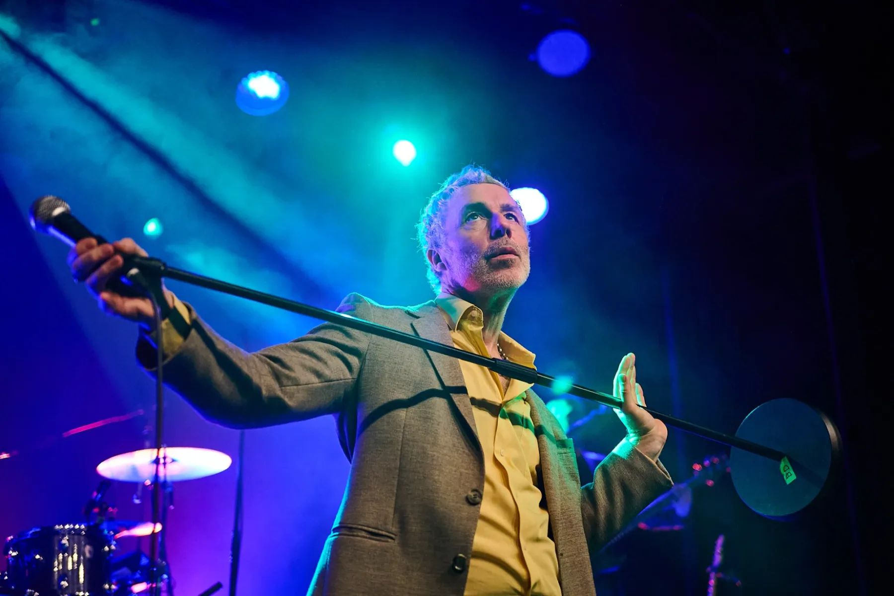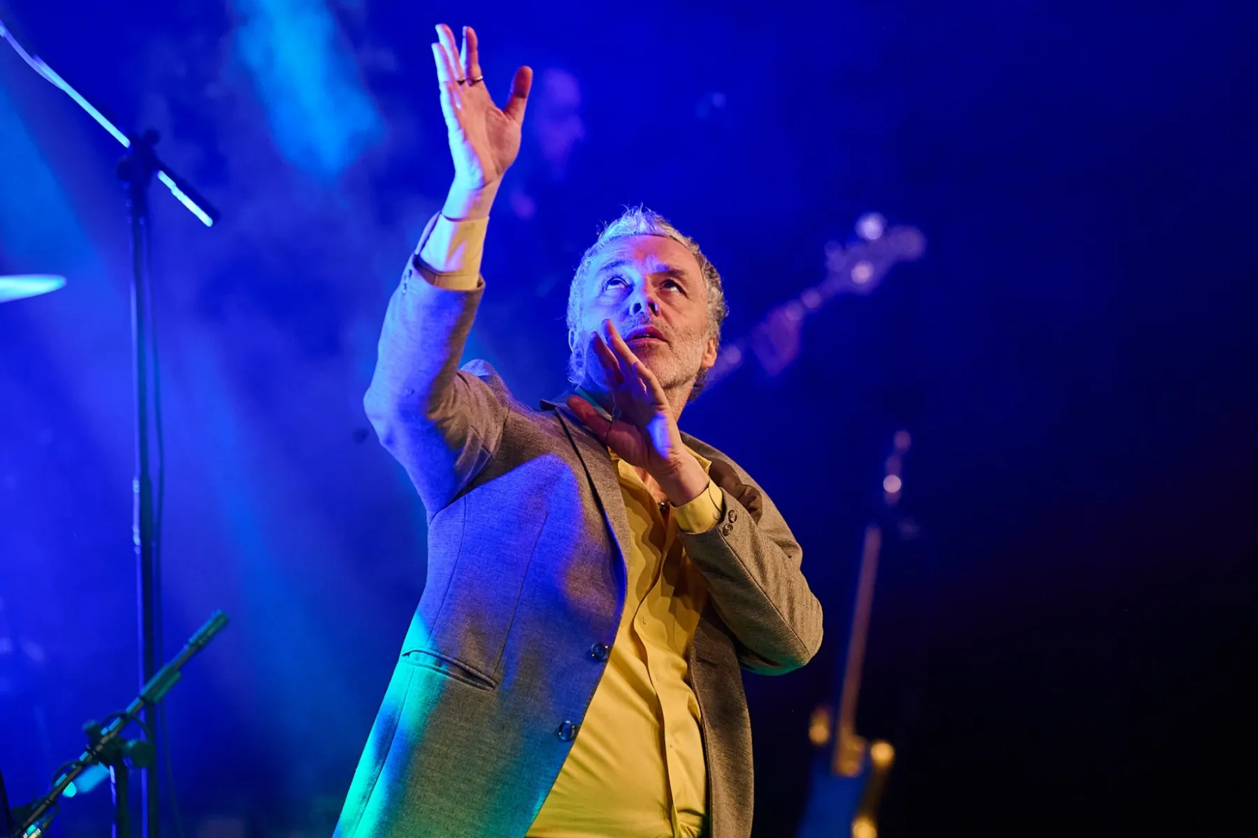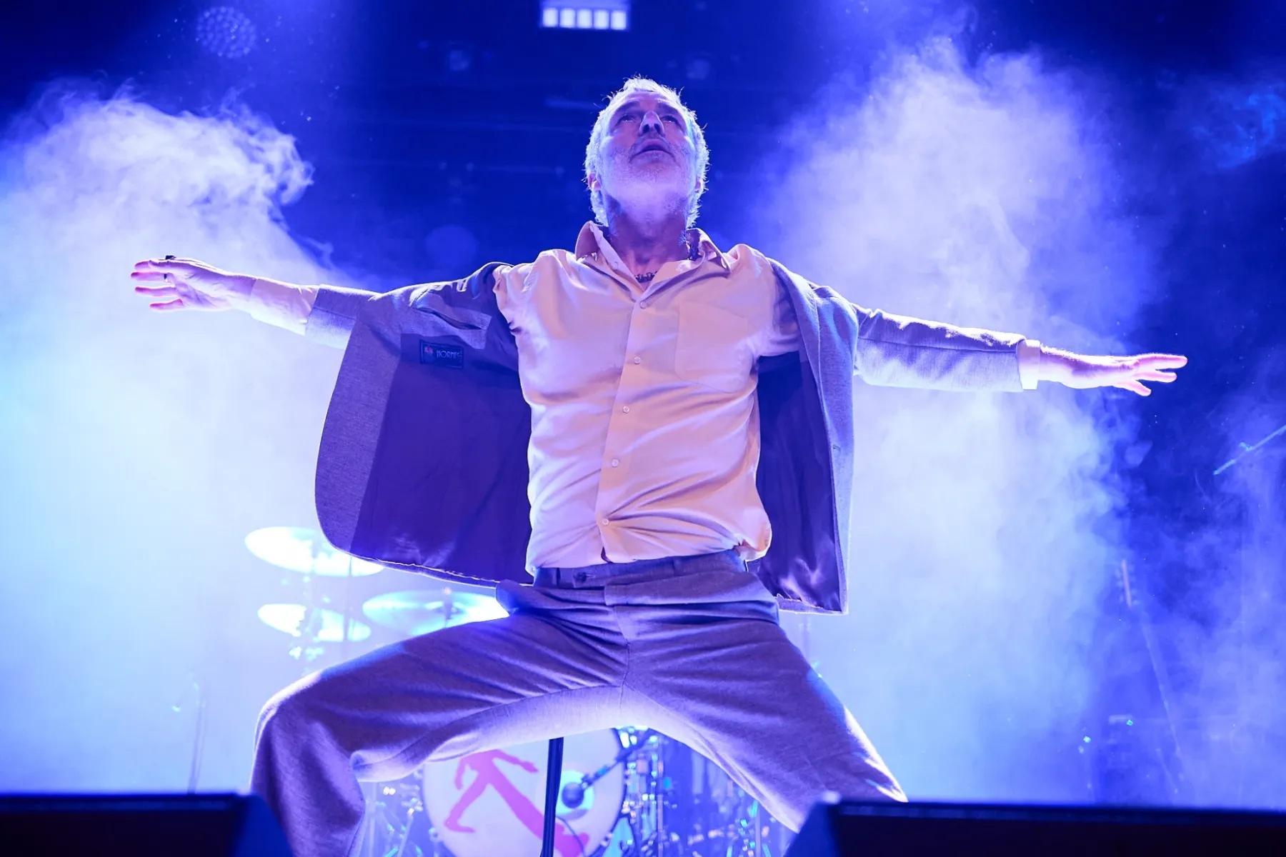 Zugegeben man musste sich auch ein bisschen auf den Fünfzigjährigen einlassen, aber spätestens bei den ersten Bässen von „Allbarone“ hatte er einen! Und als Dury dann auch noch mit schrägem Ausdruckstanz, hyperaktiven Bewegungen und wilden Grimassen über die Bühne sprang, musste man einfach begeistert tanzen.