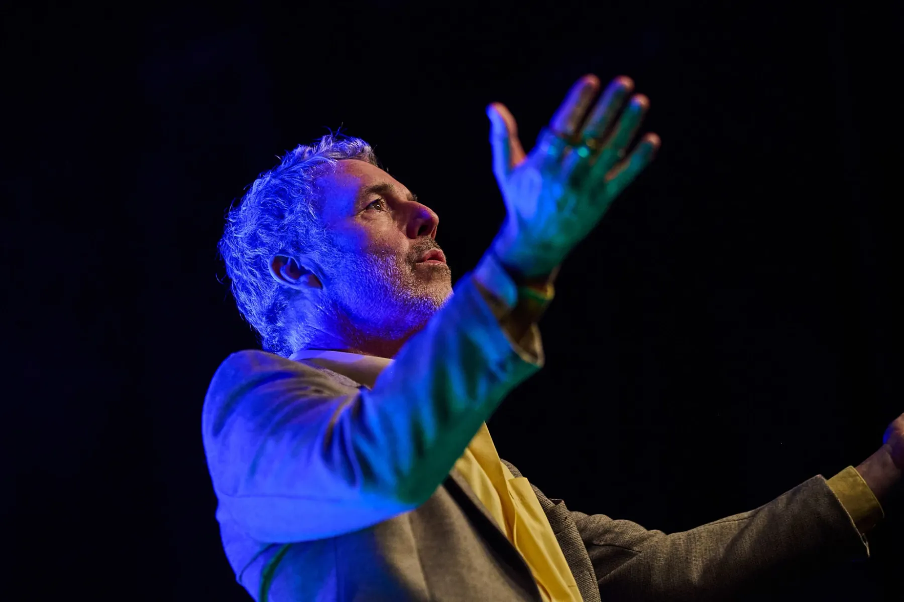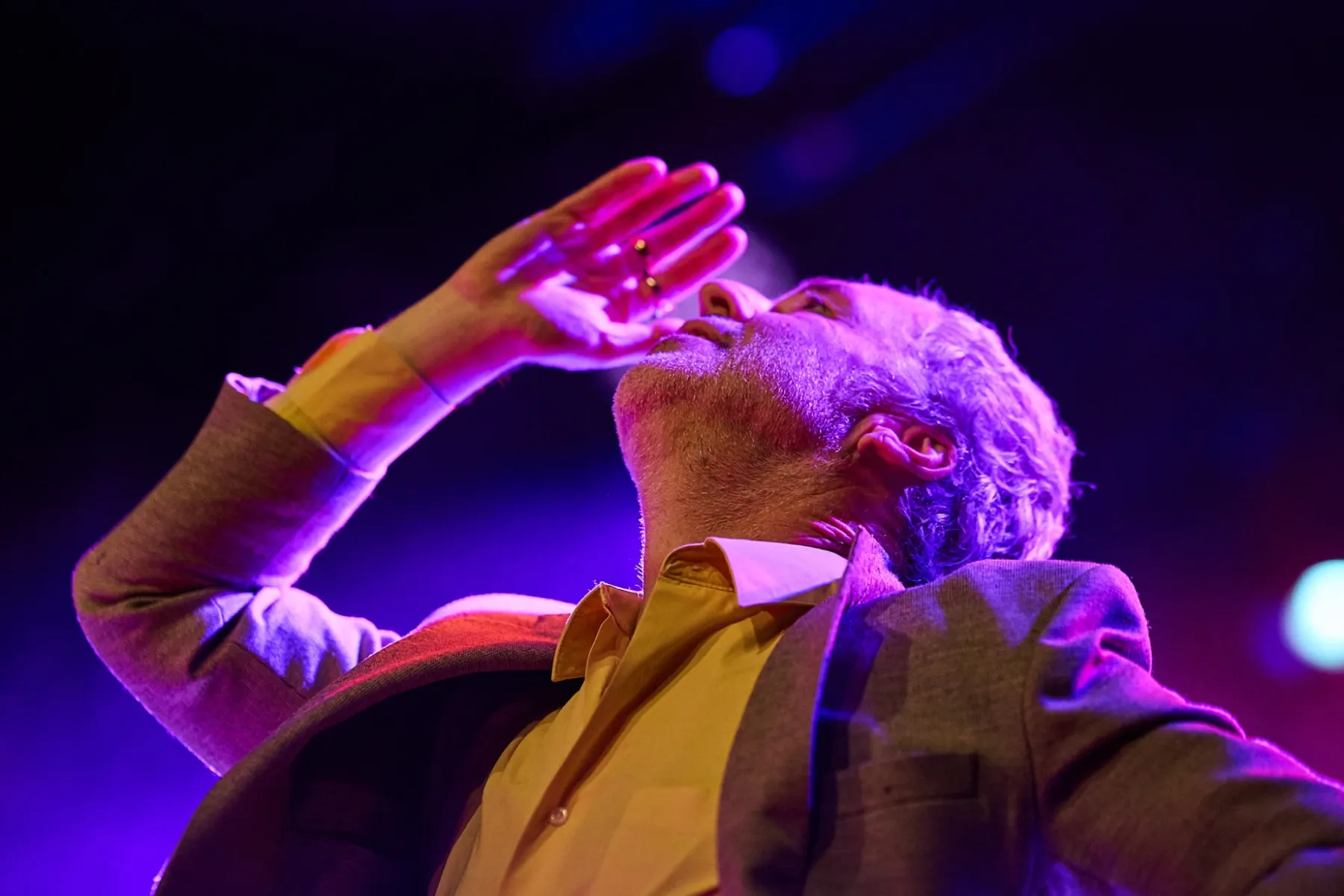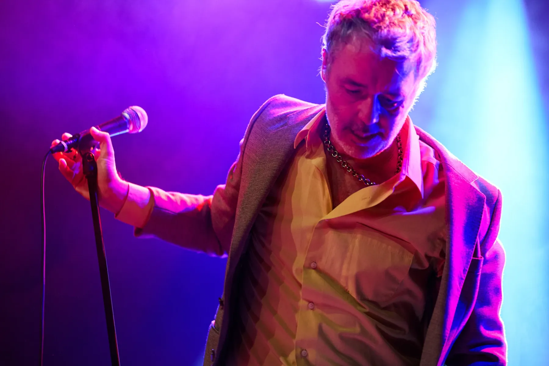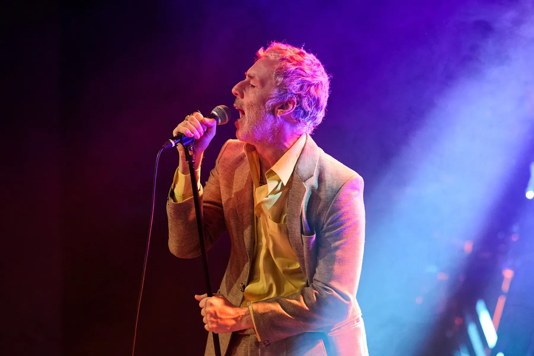 Zugegeben man musste sich auch ein bisschen auf den Fünfzigjährigen einlassen, aber spätestens bei den ersten Bässen von „Allbarone“ hatte er einen! Und als Dury dann auch noch mit schrägem Ausdruckstanz, hyperaktiven Bewegungen und wilden Grimassen über die Bühne sprang, musste man einfach begeistert tanzen.