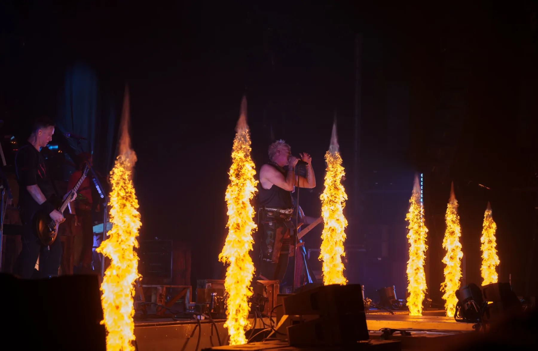 Nachdem sich das Publikum nach einem lauten Knall erst einmal ordentlich erschreckt hat, konnte das Pyro- und Flammenspektakel von In Extremo endlich starten. Fans und Fotografen wissen: da geht was! Aber richtig! In Wiesbaden zelebrierten Frontmann Michael Rhein und seine Truppe den Auftakt ihrer Tour, auf den sie sich so richtig gefreut haben. „Endlich sind wieder auf Tour“ – so der Frontmann. Können wir bestätigen. Burgenshows und sonstige Open Airs sind das eine, aber die Hallenshows haben nochmal ein ganz anderes Flair.