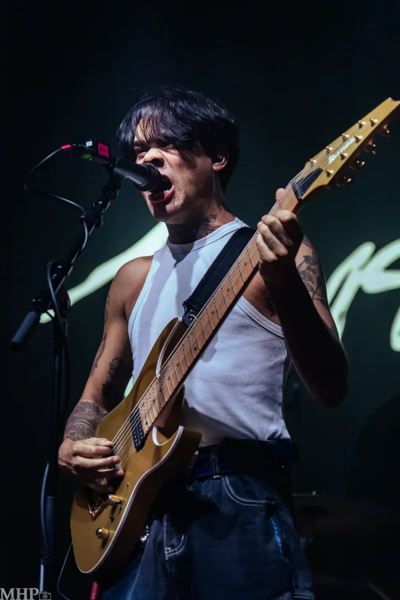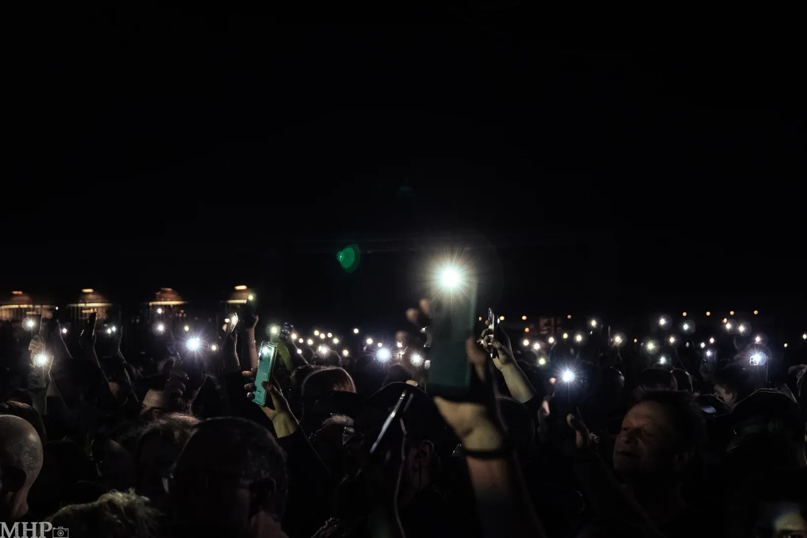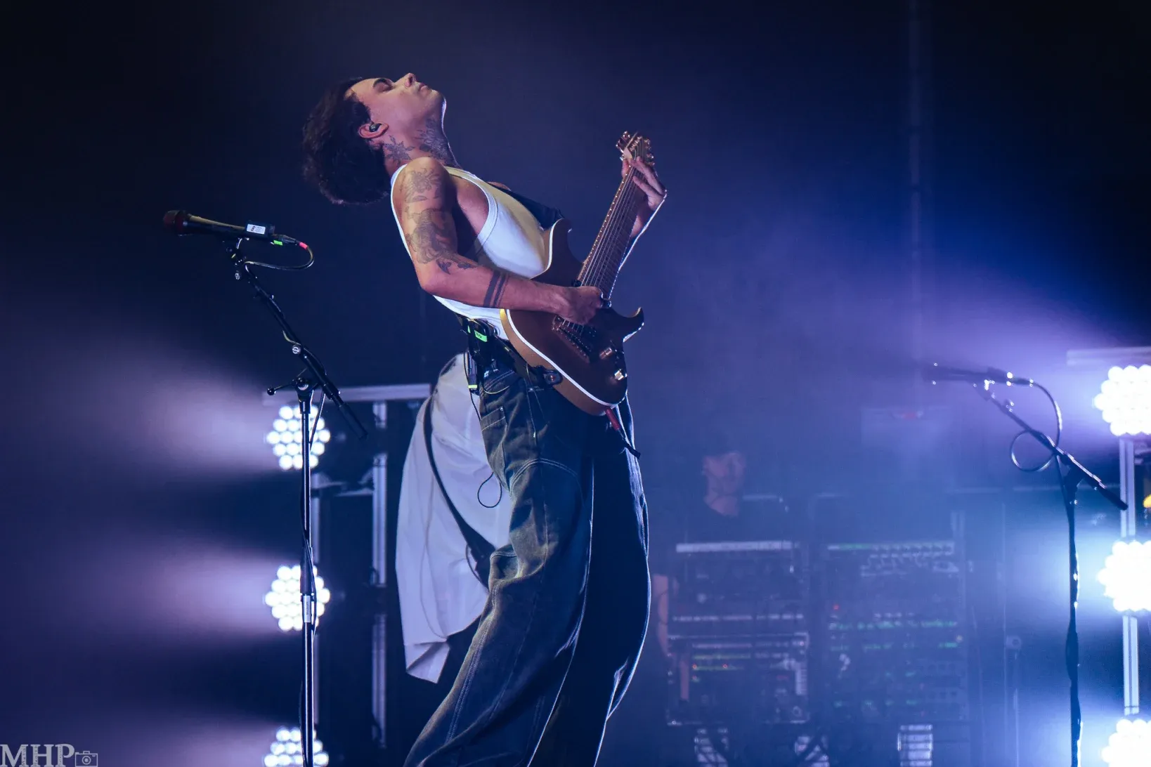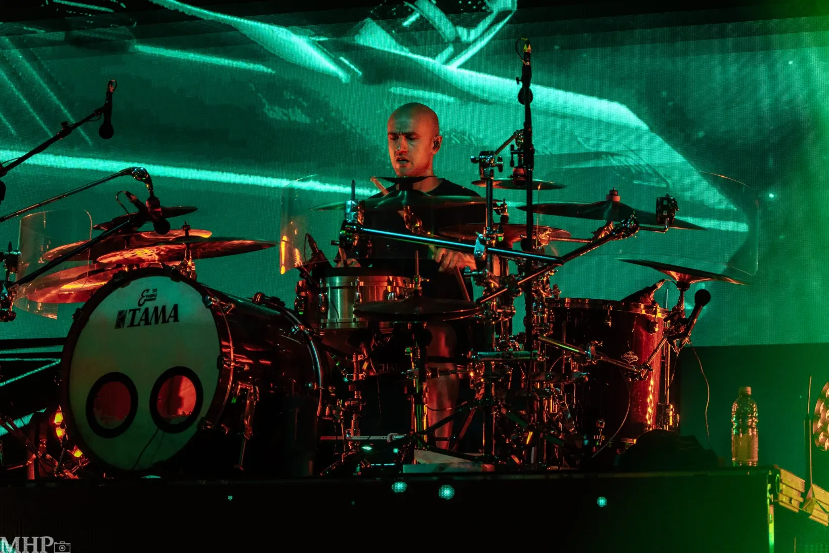 Zuerst betreten die Niederländer von Textures die Bühne im Schlachthof Wiesbaden – die Halle ist bereits gut gefüllt. Von der Security erfährt man, dass bis auf wenige Tickets die Halle fast ausverkauft ist. Die 2001 gegründete Band hatte sich 2017 zwar aufgelöst, aber seit 2023 ist das Sextett wieder aktiv. Ihren Stil beschreibt die Band selbst als „Polyrhythmic Metal Madness“, ich denke man kann es am besten mit Progressive Death Metal beschreiben. Dementsprechend lang und komplex sind die Songs von Textures, definitiv nicht jedermanns Sache, aber technisch auf jeden Fall sehr anspruchsvoll und mit knapp 40 Minuten spielen Textures auch ein ordentliches Set für einen Opener und kommen beim Publikum sehr gut an.