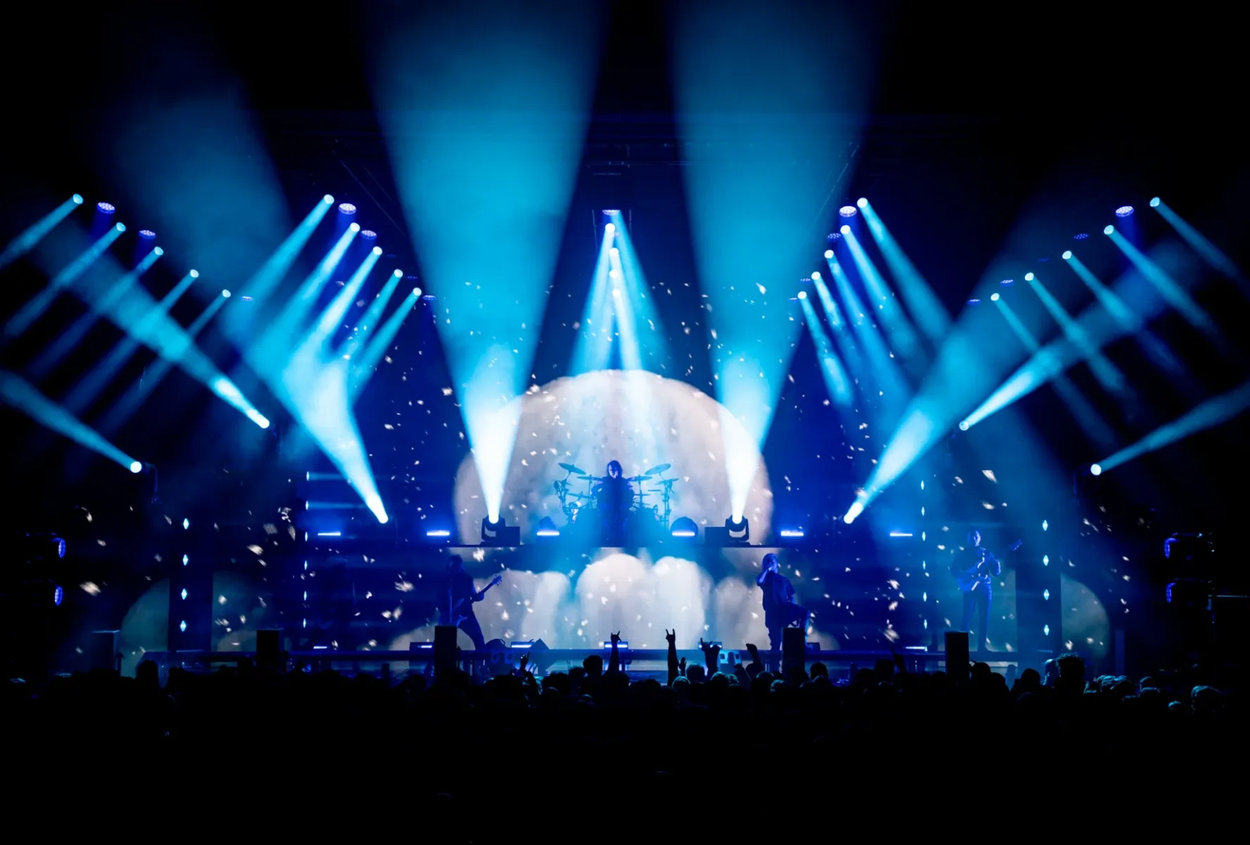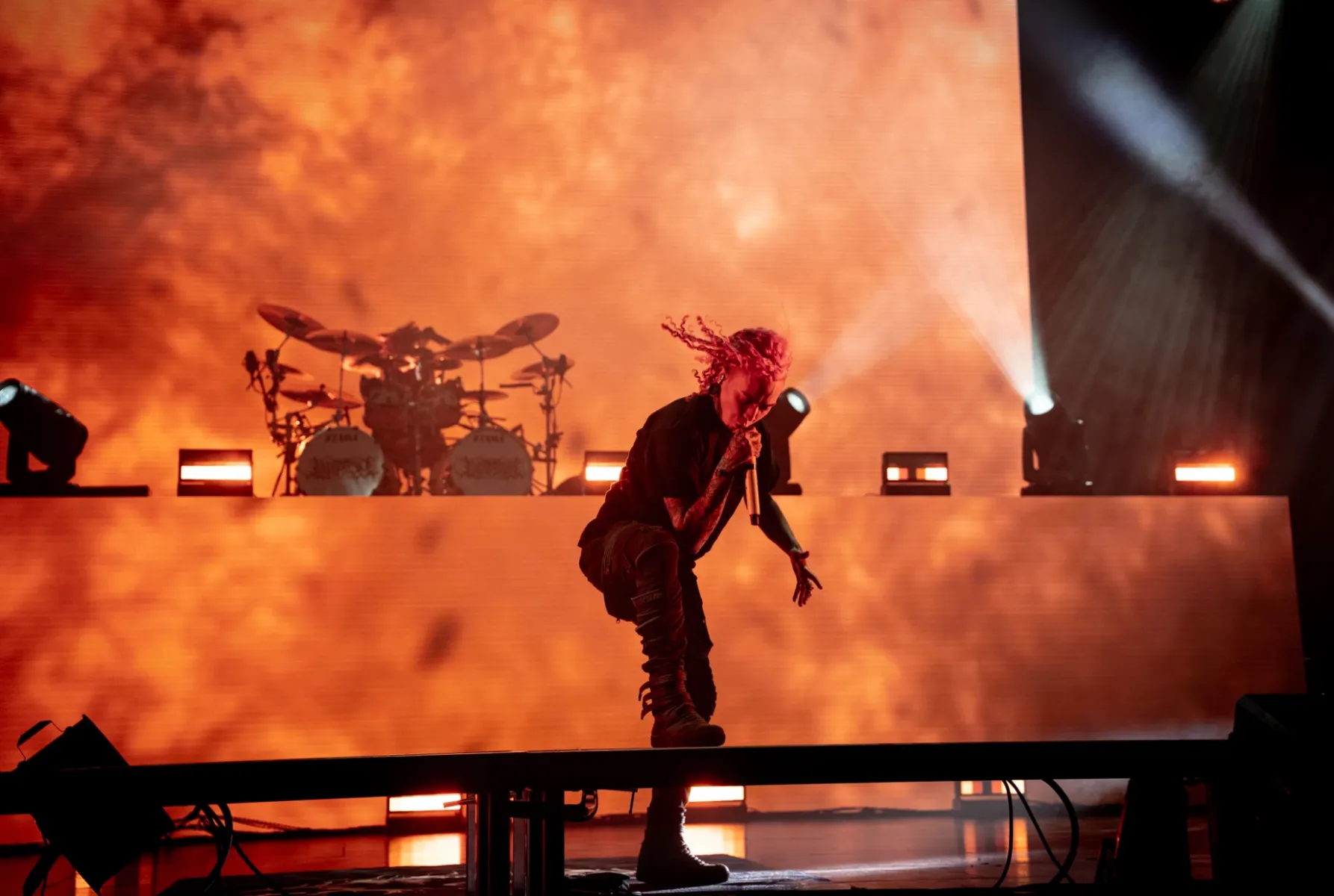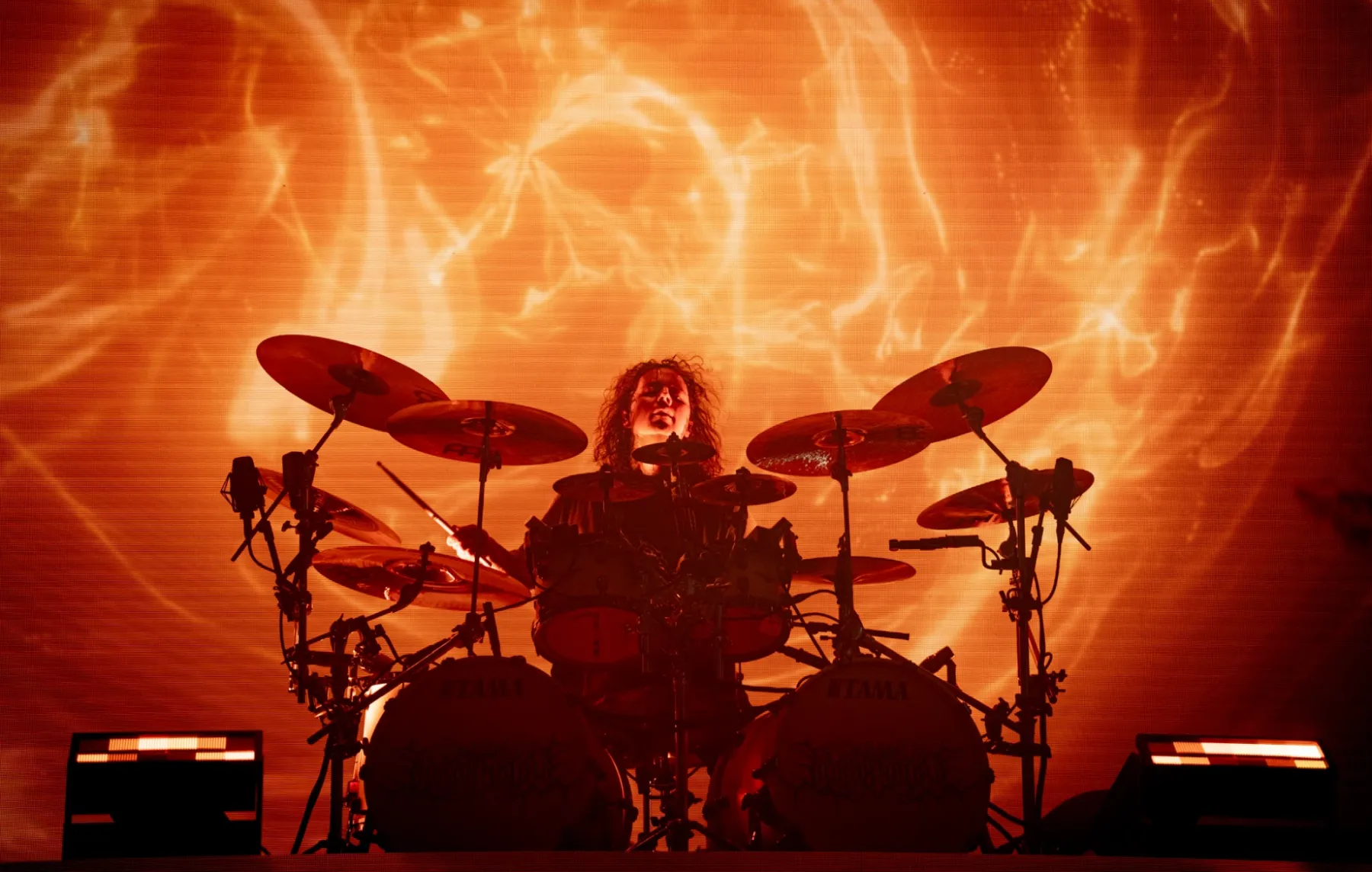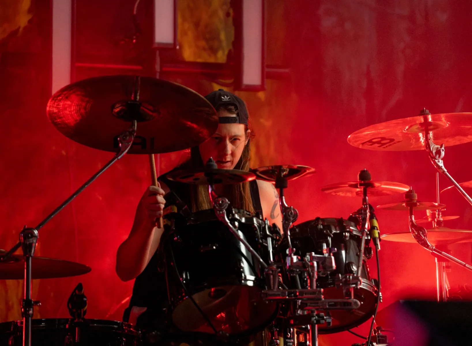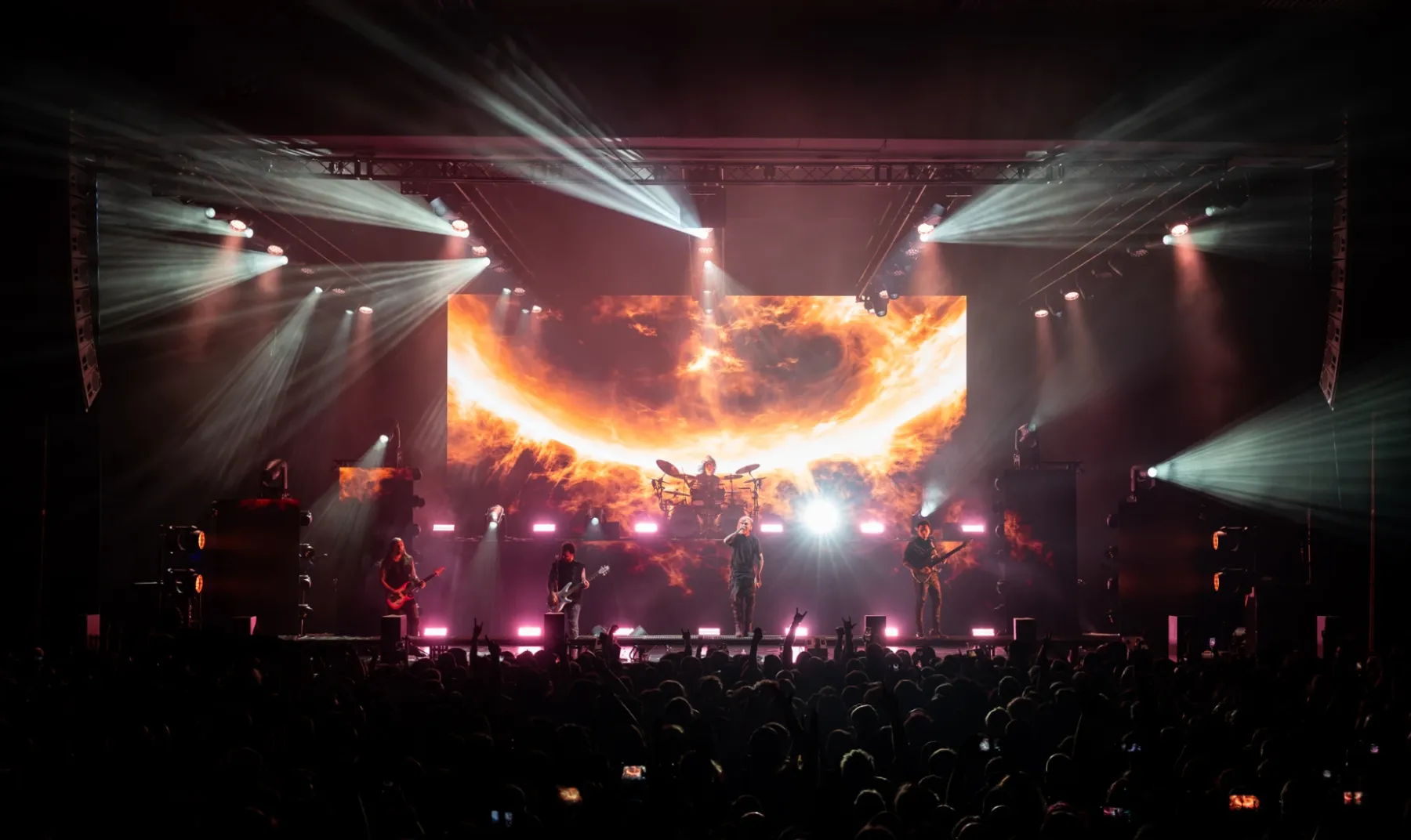 Auch visuell fuhr die Band groß auf. Riesige Videowalls dominierten die Bühne und wechselten zwischen düsteren Regenmotiven und brennenden, abstrakten Szenarien. Die Bilder unterstützten den epischen Charakter der Songs, ohne vom Geschehen auf der Bühne abzulenken. Pyro wurde im weiteren Verlauf des Sets immer wieder gezielt eingesetzt – nicht übertrieben, aber wirkungsvoll genug, um Highlights zu setzen. Auch Lorna Shores‘ Fotograf durfte mit auf die Bühne und zum Mikro greifen.