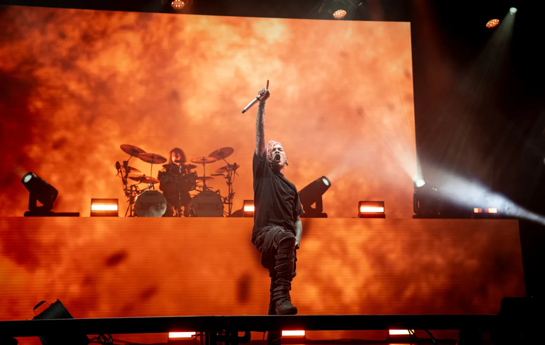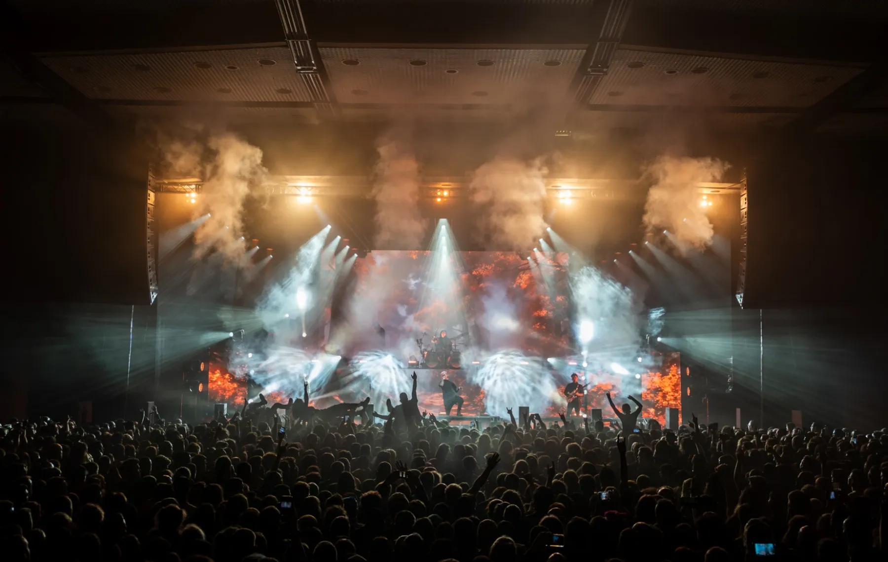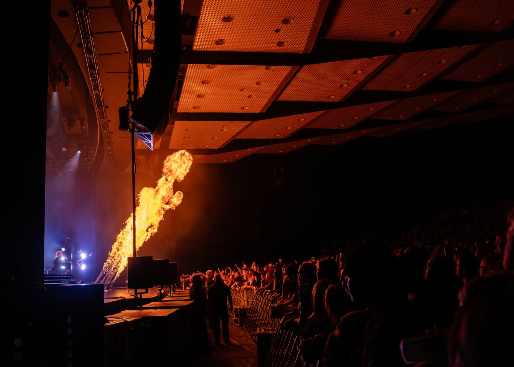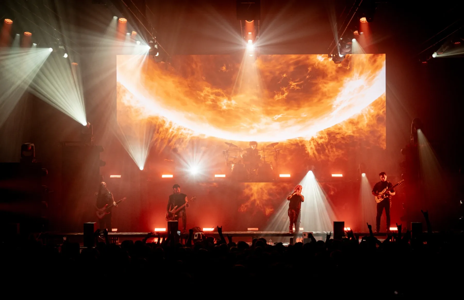 Lorna Shore machten von der ersten Sekunde an deutlich, dass dieser Abend keine Aufwärmphase braucht. Schon der Opener „Oblivion“ wurde von massiver Pyrotechnik begleitet, Flammen schossen direkt zu Beginn in die Höhe und setzten den Ton für das, was folgen sollte. Das Publikum war sofort da: Moshpits öffneten sich unmittelbar und Headbangen was das Zeug hielt, war hier angesagt.