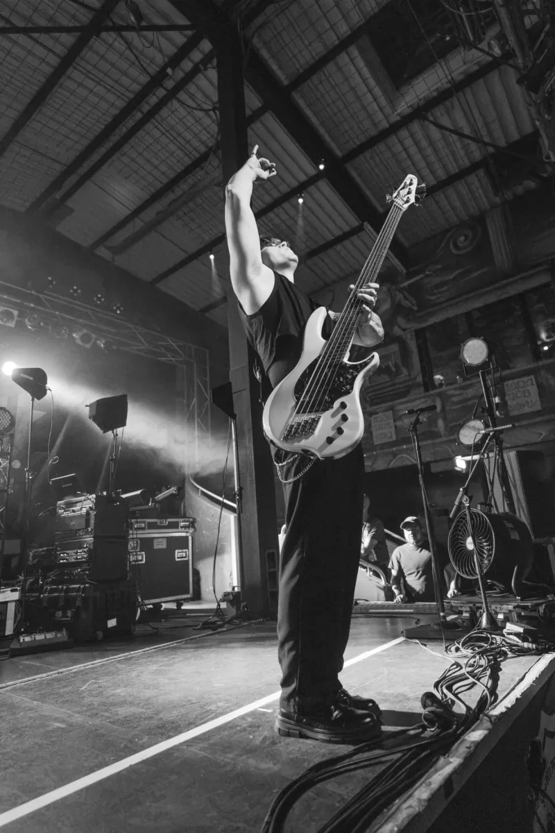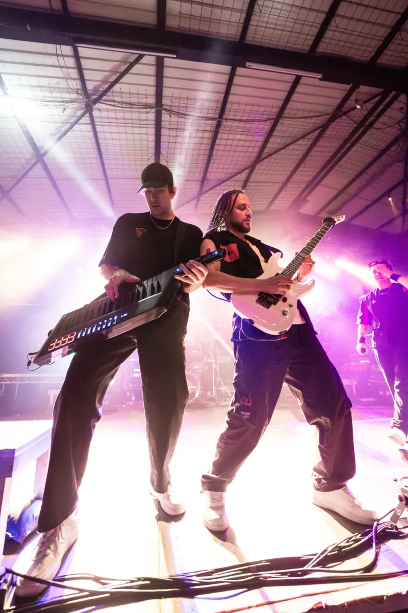 Neu ist bei dieser Tour übrigens wieder ein selbstgebasteltes Instrument, an dem sich Mark als Gitarrist, Dan als Bassist und Jonny als Drummer gleichzeitig dran ausleben. Kann man eigentlich gar nicht beschreiben. Muss man gesehen haben. Aber, wer den (das?) „Scorpion Tail“ von Nothing More kennt, den kann so ein Mix aus Bass/Gitarre und Drum auch nicht mehr groß aus dem Konzept bringen. 😉