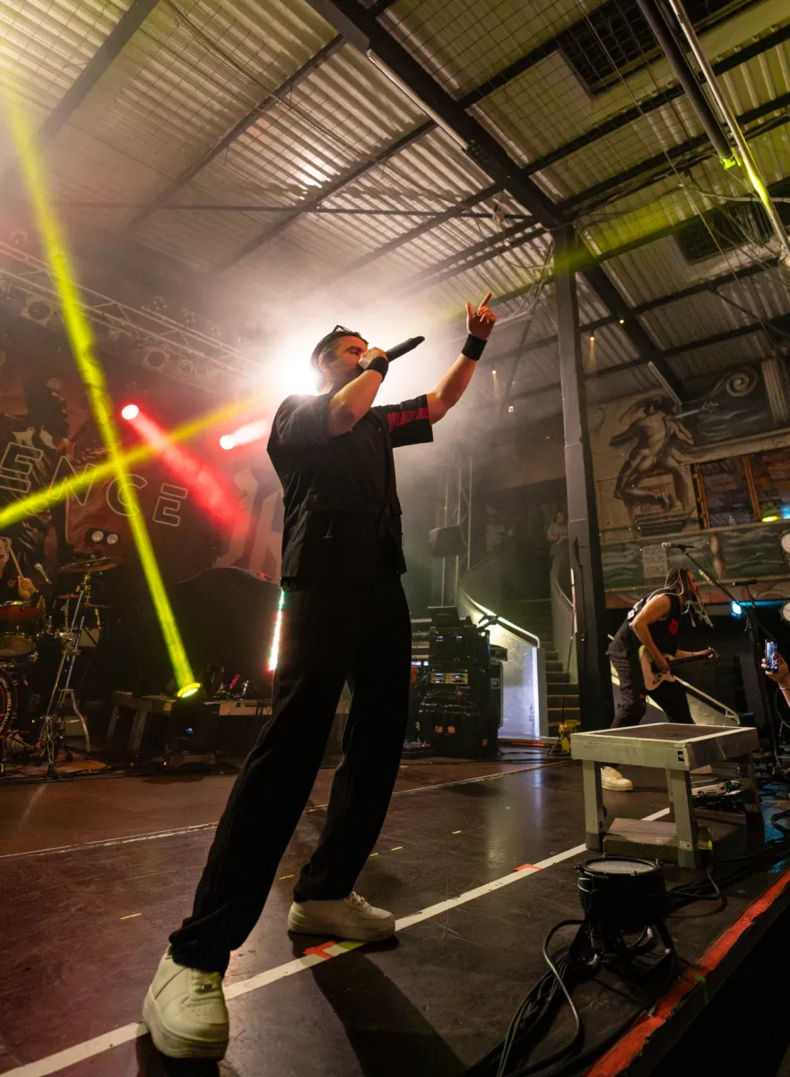 Die Setlist wurde kurzerhand ein wenig gekürzt, was mich an der Stelle persönlich ein wenig traurig gemacht hat, da seit längerem einmal wieder „Mr MTV“ auf der Setlist stand, dann aber doch nicht gespielt werden konnte. Aber, natürlich geht Gesundheit immer vor und so ließ sich Jonny vom Publikum beim Gesang immer wieder unterstützen. Gitarrist Mark gab bei „Stuck“ wieder alles, wenn er den Part von Sinizter, der diesen Teil im original Song eigentlich übernimmt, zum Besten gibt.
