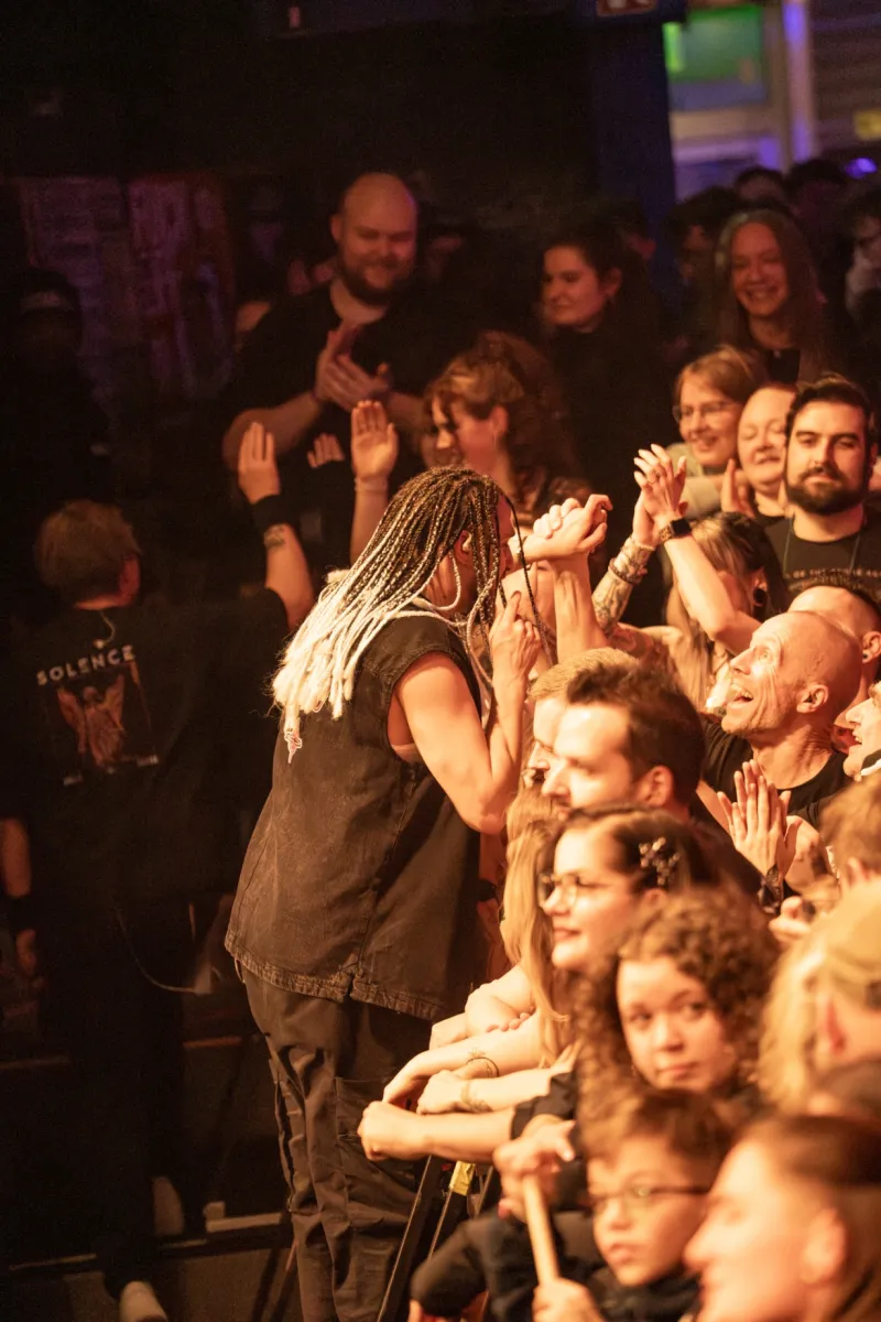 Nach einem kurzen Umbau ging es auch schon mit Solence weitergehen. Auch hier zeigten sich Band und Publikum mächtig motiviert. Die gute Laune der Band war ansteckend, das Publikum feierte ausgelassen zu Songs wie „Angels Calling“, „Blackout“ oder na klar, ihrem Klassiker „Who You Gonna Call (Solence)?“.