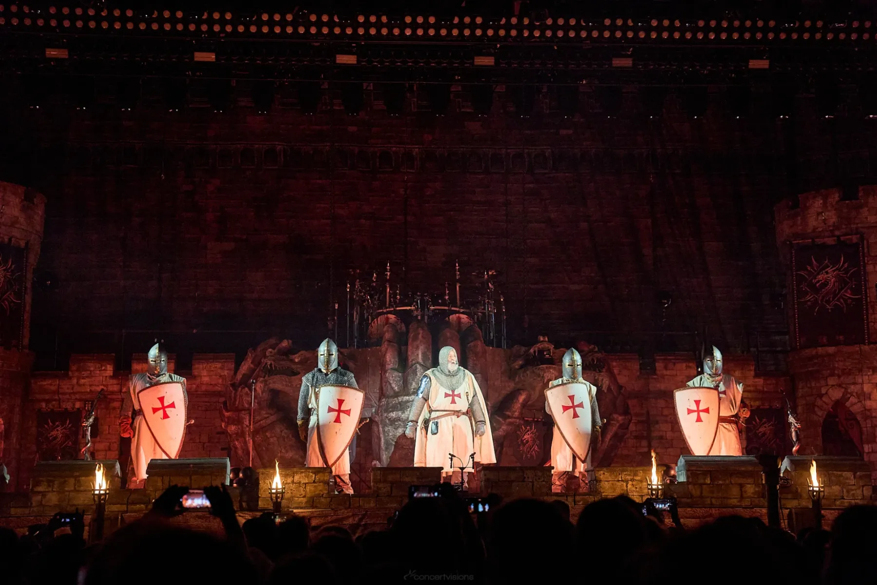 Nach rund 15 Minuten Show-Einlage kommen dann Sabaton im mittelalterlichen Gewand der Kreuzritter auf die Bühne und starten passenderweise mit „Templars“ in den Abend. Einer der aktuellste Tracks, der übrigens in Kollaboration mit Nothing More entstand, „Crossing The Rubicon“, soll natürlich auf der aktuellen Tour und so auch an dem Abend in Stuttgart nicht fehlen.