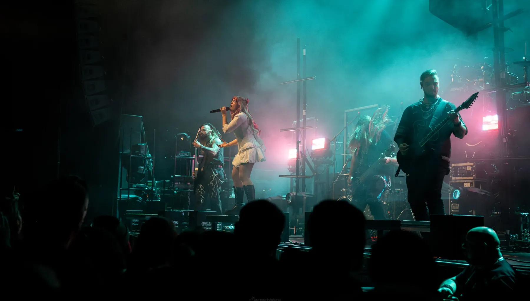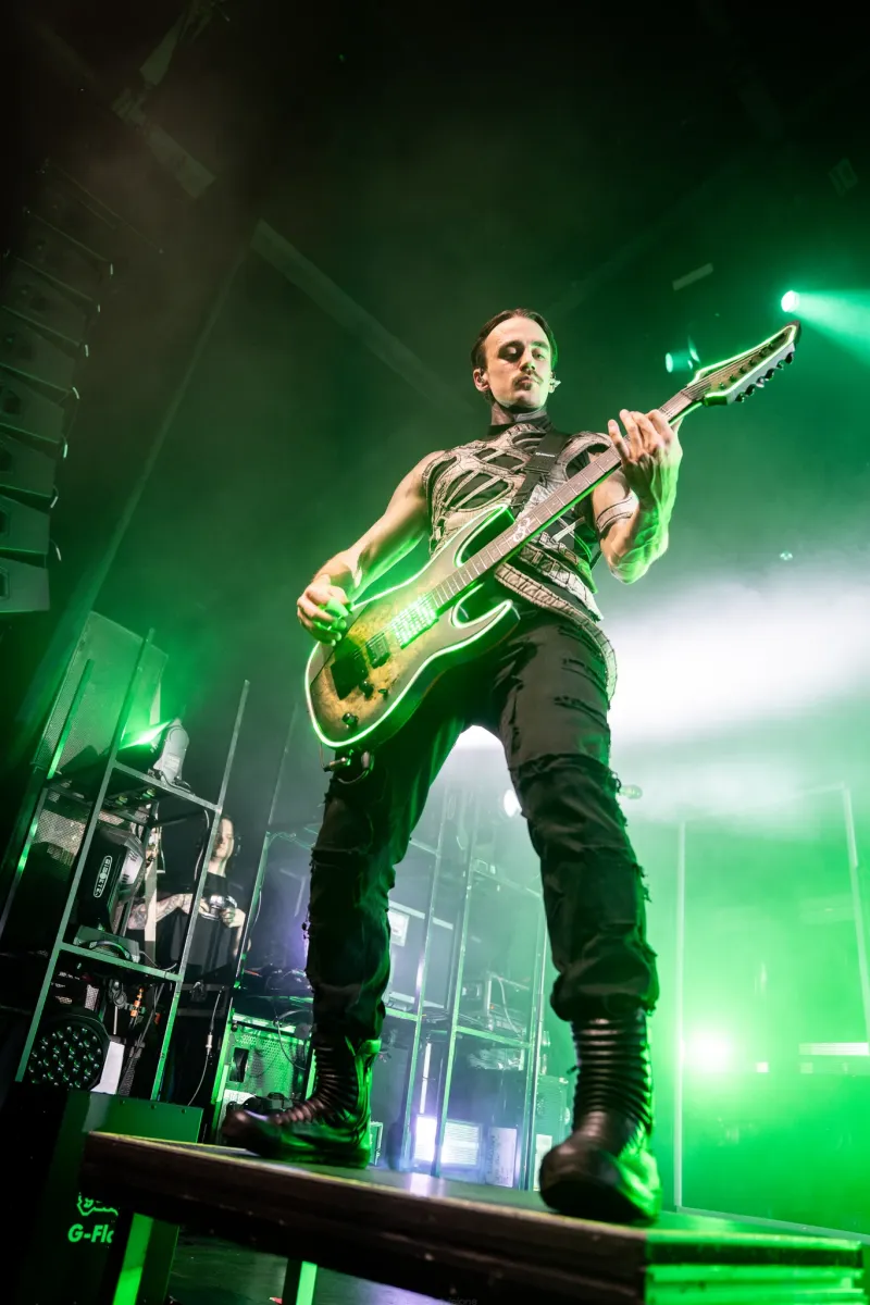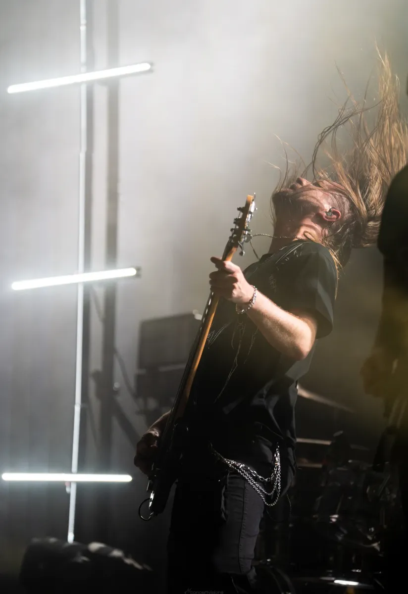 Die US-Amerikaner von Dark Divine haben in Wiesbaden den Abend eröffnet und kamen beim Publikum sehr gut an. Ob es daran lag, dass sie sich bereits im Vorfeld auch schon beim Meet & Greet gezeigt haben? Oder weil sie u.a. ihren neuesten Track „Halft Past Dead (Unbury Me)“ an diesem Abend präsentierten? Wir wissen es nicht, aber, was wir wissen ist, dass die düstere Atmosphäre auf der Bühne auch noch einmal ihre Songs gut unterstrichen hat.
