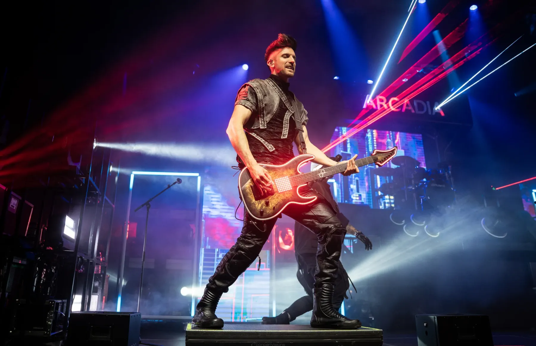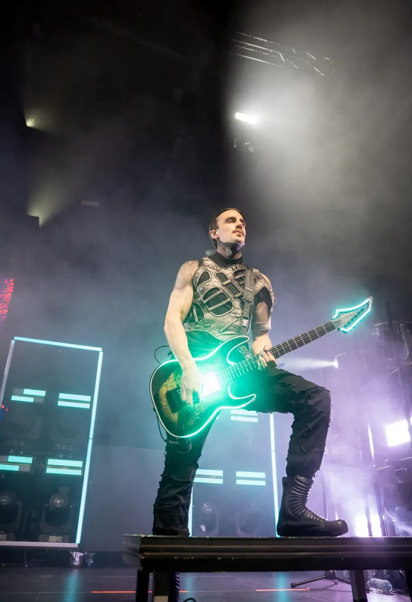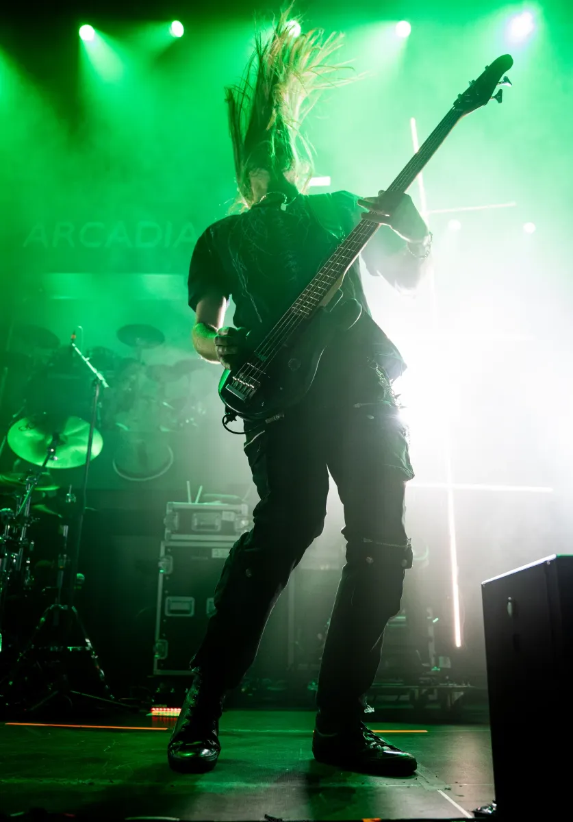 Die US-Amerikaner von Dark Divine haben in Wiesbaden den Abend eröffnet und kamen beim Publikum sehr gut an. Ob es daran lag, dass sie sich bereits im Vorfeld auch schon beim Meet & Greet gezeigt haben? Oder weil sie u.a. ihren neuesten Track „Halft Past Dead (Unbury Me)“ an diesem Abend präsentierten? Wir wissen es nicht, aber, was wir wissen ist, dass die düstere Atmosphäre auf der Bühne auch noch einmal ihre Songs gut unterstrichen hat.