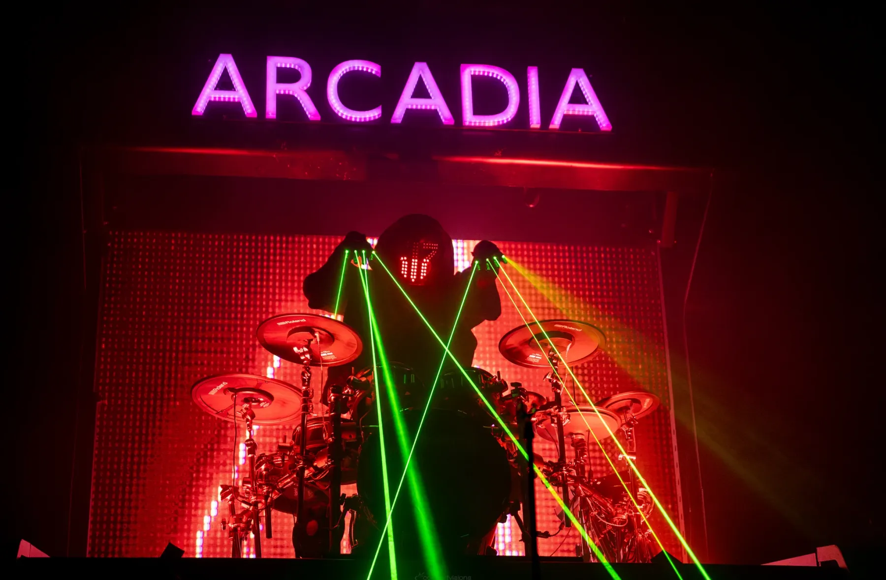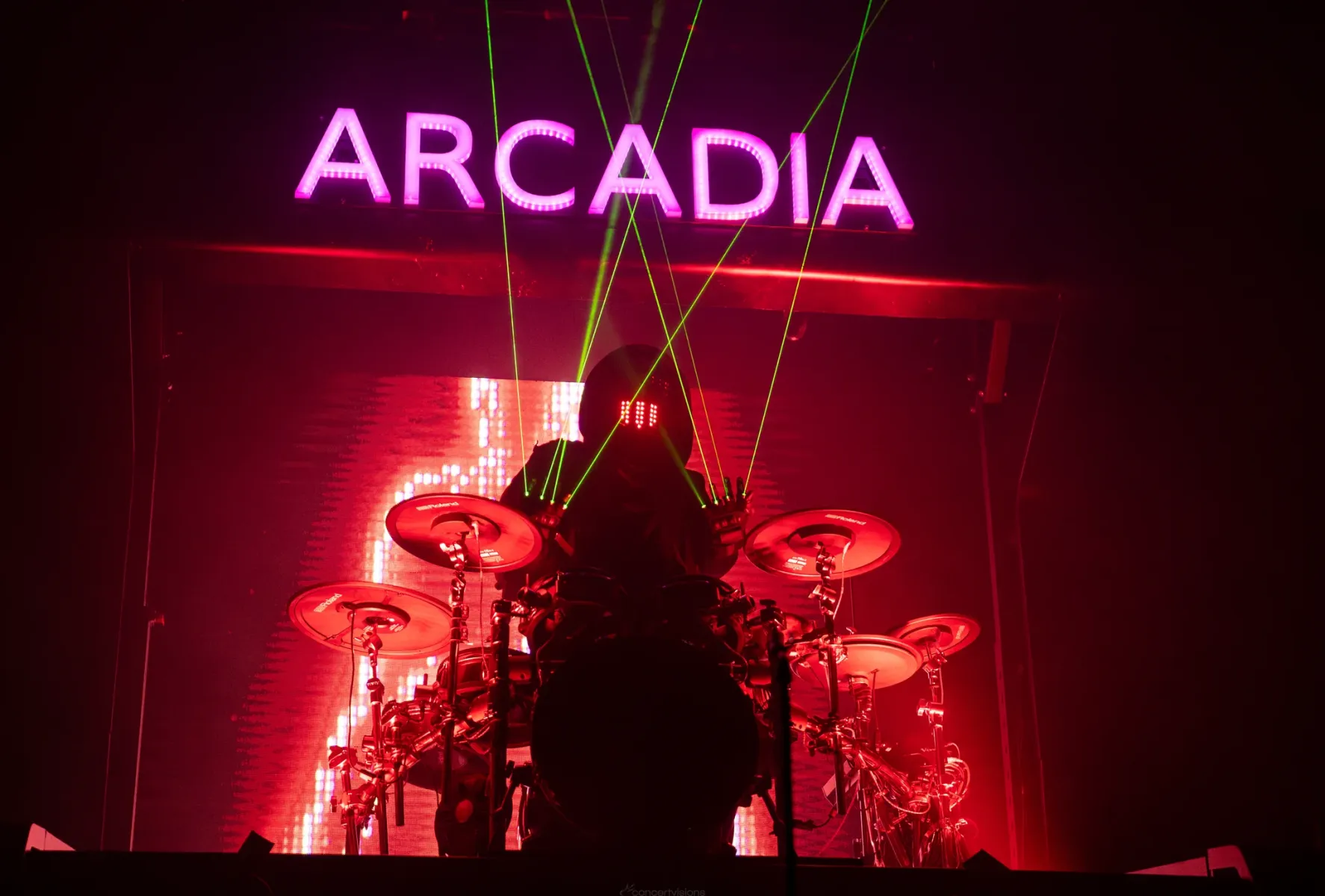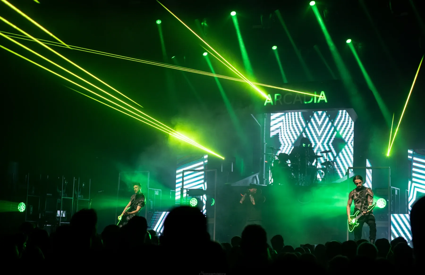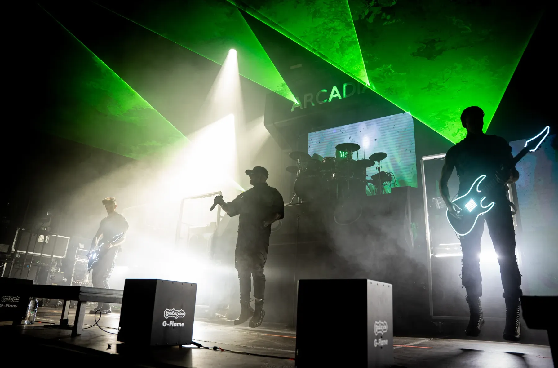 Mit der Pyro war übrigens an diesem Abend noch lange nicht Ende der Fahnenstange, was die Effekt anbetrifft. Nein, immer häufiger sieht man nun bei Rock- und Metalkonzerten, dass auch Laser zum Einsatz kommen. Und sind wir ehrlich, wo könnten sie besser passen, als bei einer Band, die bereits mit The APOC einen Drummer hat, der schon eine leuchtende Maske trägt? Aber seht selbst, wie gut die Kombi optisch passt! 🙂