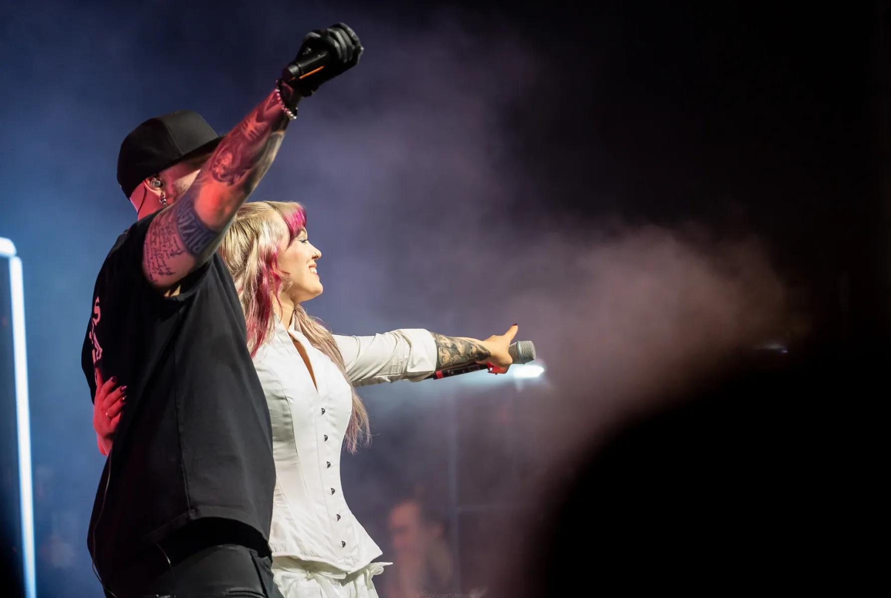 Zu „Boomerang“ schnappte sich Frontmann Chris noch kurzerhand Enemy Inside Frontfrau Nastassja und sie performten gemeinsam den Track. Eine schöne Überraschung, die auch in Wiesbaden gut ankam. Die Fans feierten den gemeinsamen Auftritt von Smash Into Pieces mit Nastassja.