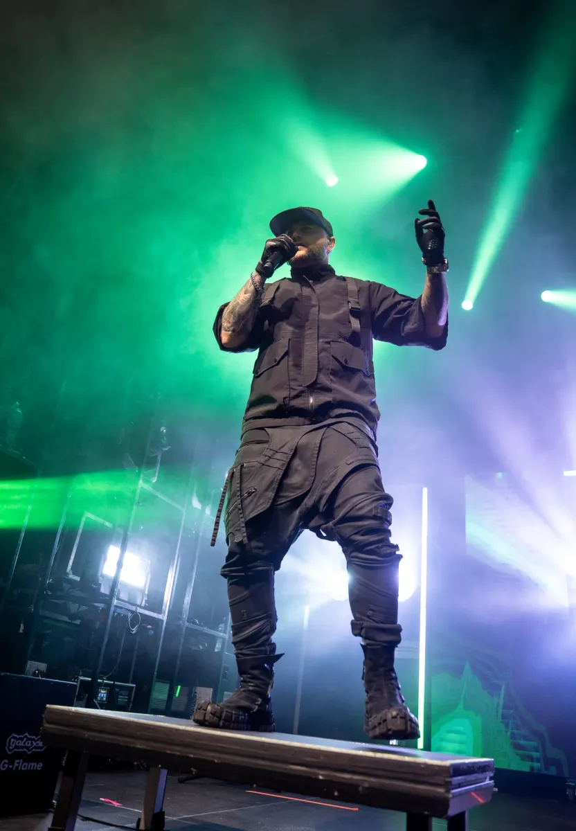 Wie eingangs erwähnt war der Schlachthof nur gut zur Hälfte gefüllt. Aber, wir finden nach wie vor, wer nicht da war, hat definitiv etwas verpasst! Gleich beim dritten Song gab es ein wenig Pyro, welche die ersten Reihen noch einmal mehr aufheizte. „Venom“, „Trigger“ und na klar, der Klassiker „All Eyes On You“ kamen in Wiesbaden sehr gut an.