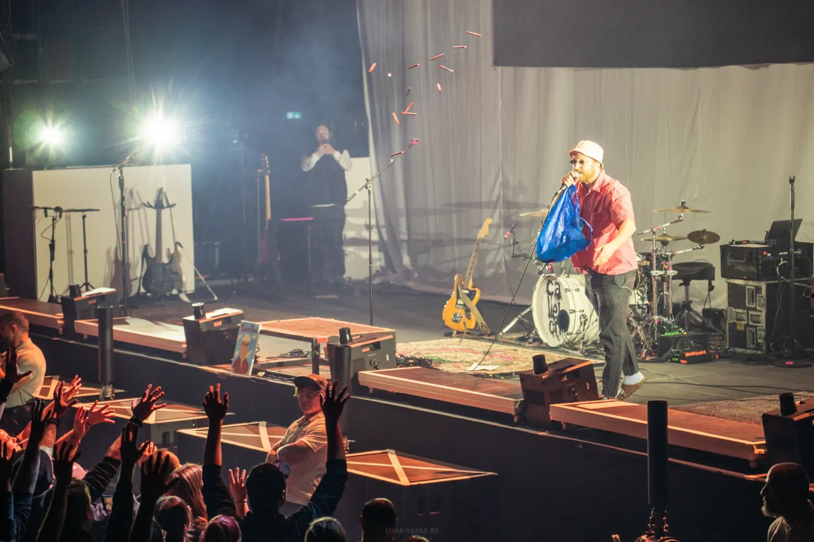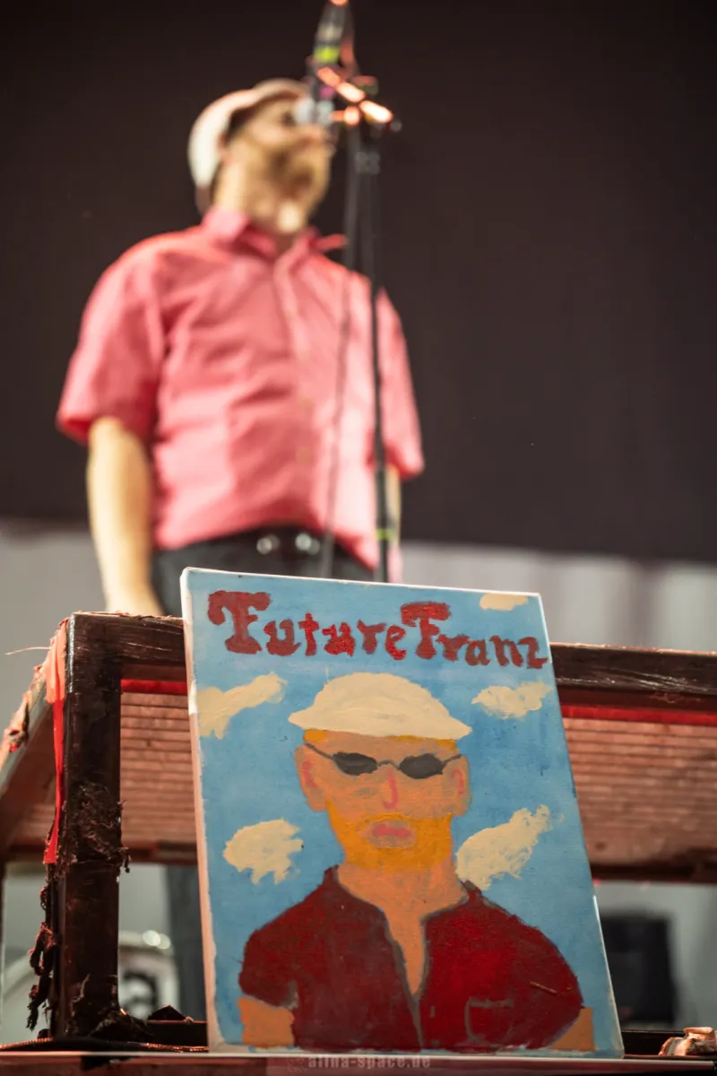 Um etwas ruhiger zu beginnen brachte der Kornwestheimer Future Franz ein paar Indie-Pop-Vibes auf die Bühne. Daniel Strohäcker, so sein Geburtsname, fällt nicht nur mit seinen ironischen und humorvollen Texten auf, sondern auch mit seinem Outfit. Mit seinem Fischerhut und in seinen Birkenstock-Sandalen teilt er mit seinen Songs persönliche Gedanken oder auch Situationen aus dem Alltag.