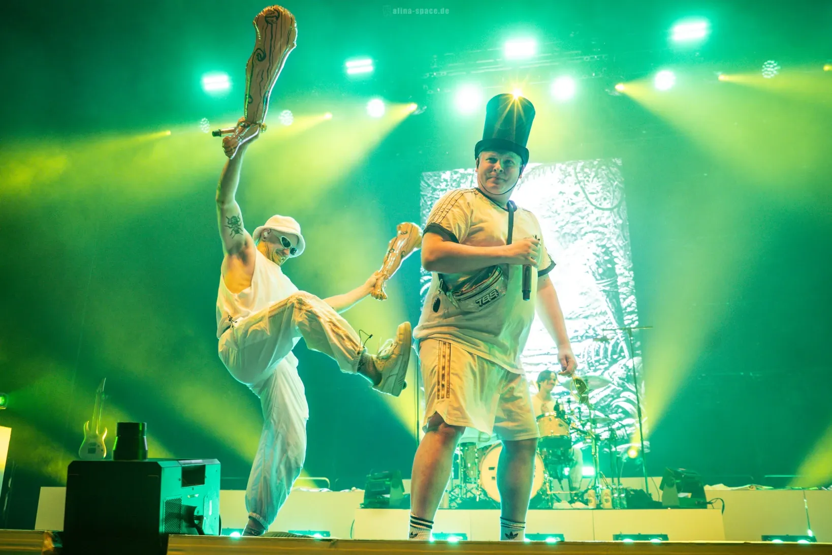 Neben den zahlreichen Showelementen war auch musikalisch und körperlich viel los: Crowdsurfing, Circle Pits und Mosh Pits prägten die MHP Arena an diesem Abend. Stroppo selbst wagte sich mehrfach ins Publikum und trug zusätzlich Rollschuhe, mit denen er über die Bühne glitt. Die Lichtshow setzte auf bunte Farben. Das Publikum war optisch ebenfalls angepasst und viele trugen bunte Kostüme. Der perfekte Abend also, um mal richtig „die Sau rauszulassen“ und „Party zu machen“.