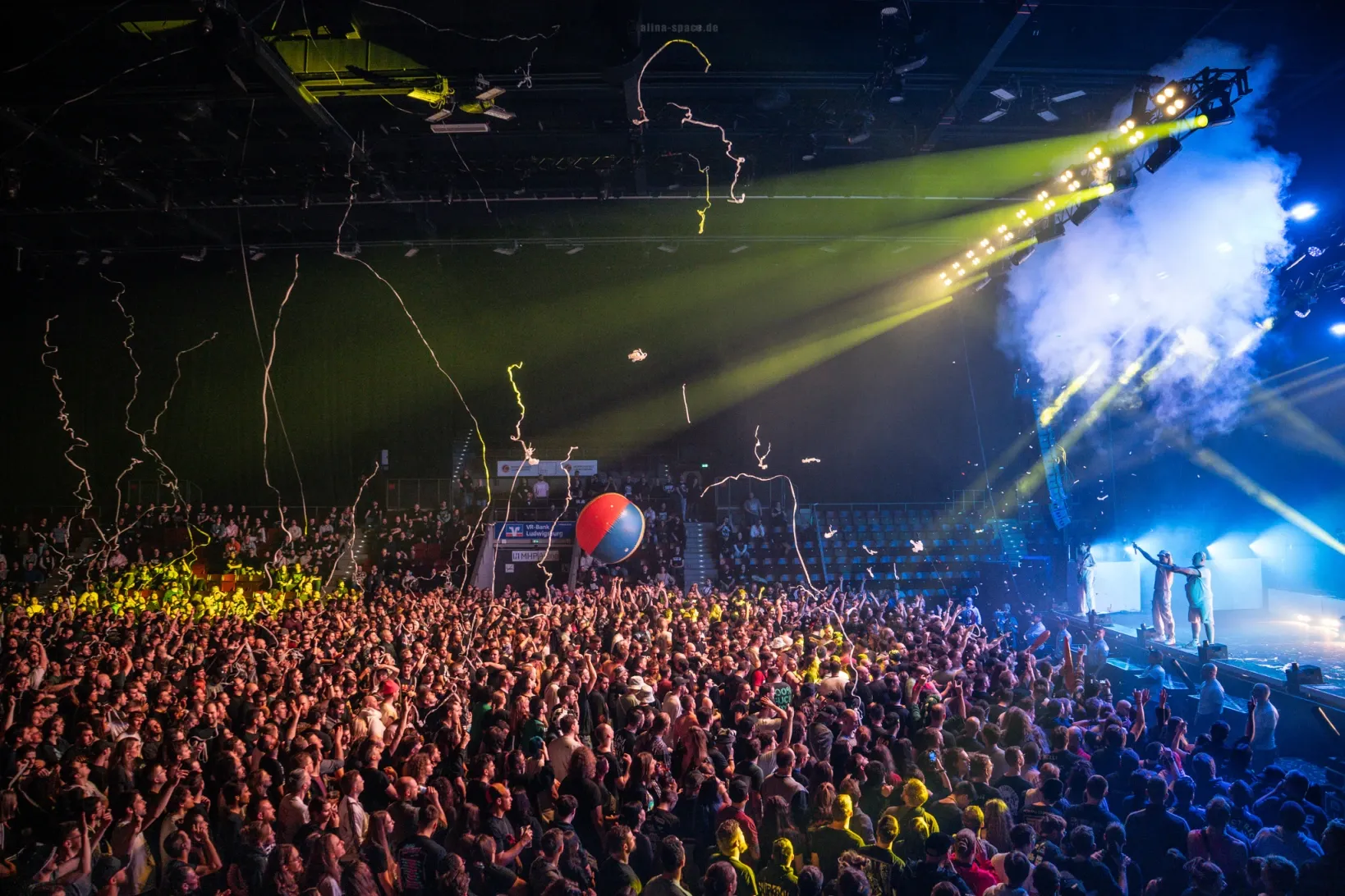 Für den Song „Baggersee“ durfte ein riesiger Wasserball natürlich nicht fehlen. Damit auch alle etwas davon haben, flog der Ball direkt ins Publikum.