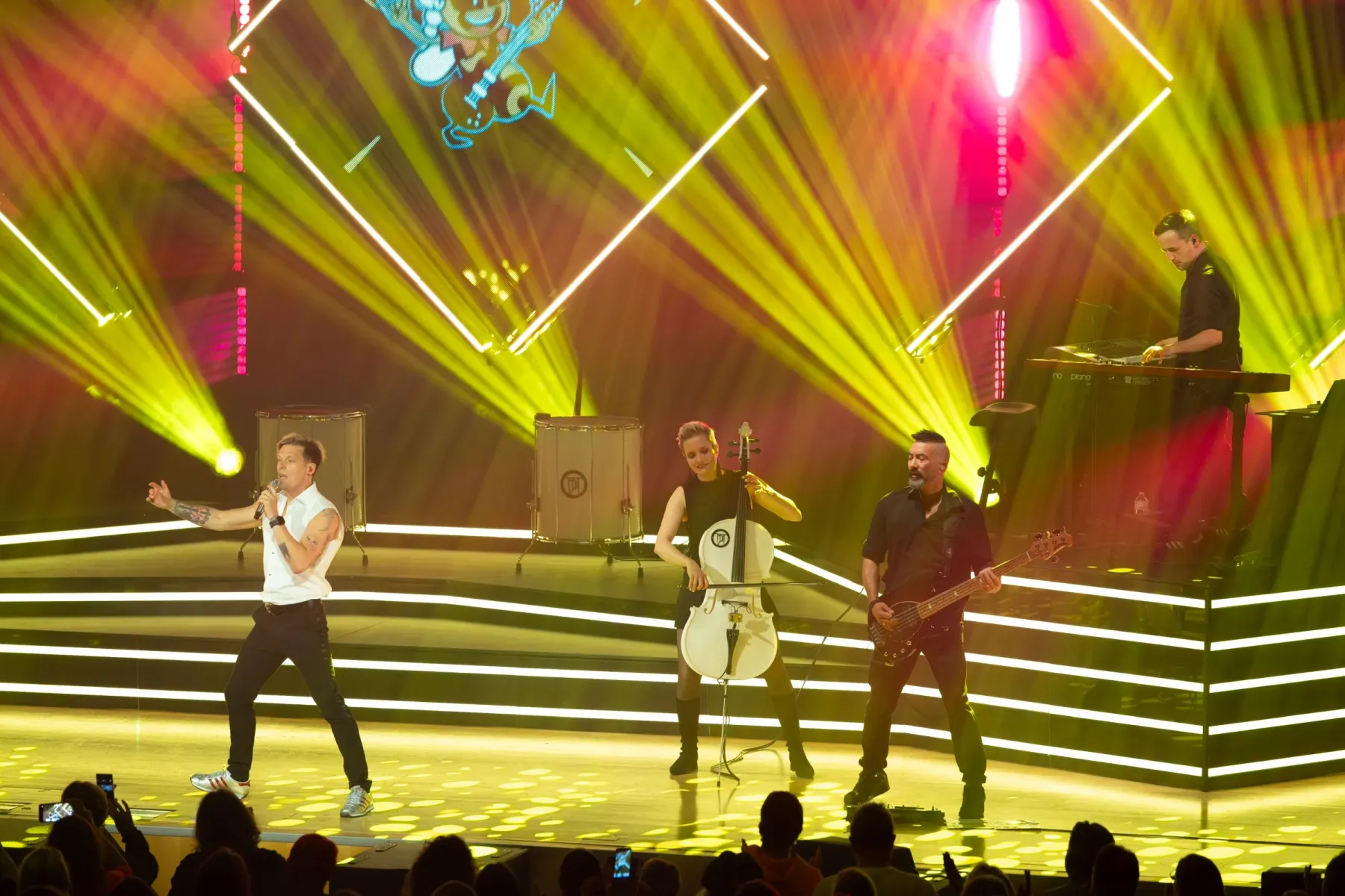 Zwischen Konfetti und Luftschlangen durfte das Publikum wieder einmal in Erinnerungen schwelgen (Stichwort „Heidenröslein“ oder auch „Backstreet Boys“) und sich an den Frotzeleien zwischen Pianist Eric und Billy erfreuen. Auch das Duell zwischen Gitarrist Stefan und Cellistin Mara kam in Heilbronn ebenfalls gut an. Classic meets Rock in einem Battle, wie man es in dieser Form nicht oft auf den Bühnen zu sehen bekommt. Schon gar nicht, wenn man als eigentlich sitzendes Publikum auch mal richtig aus sich rausgehen darf und mitsingen- und tanzen darf.