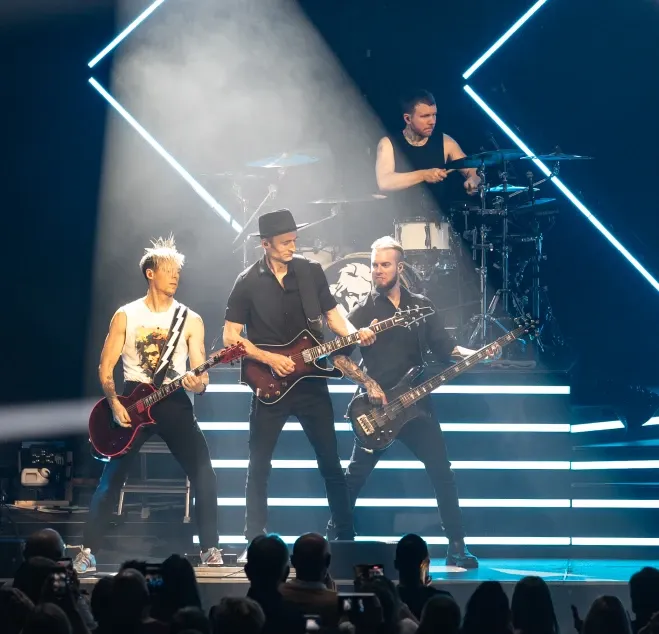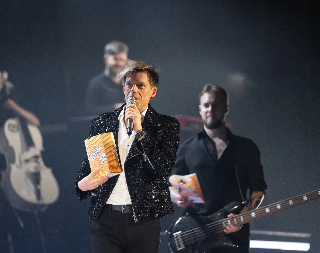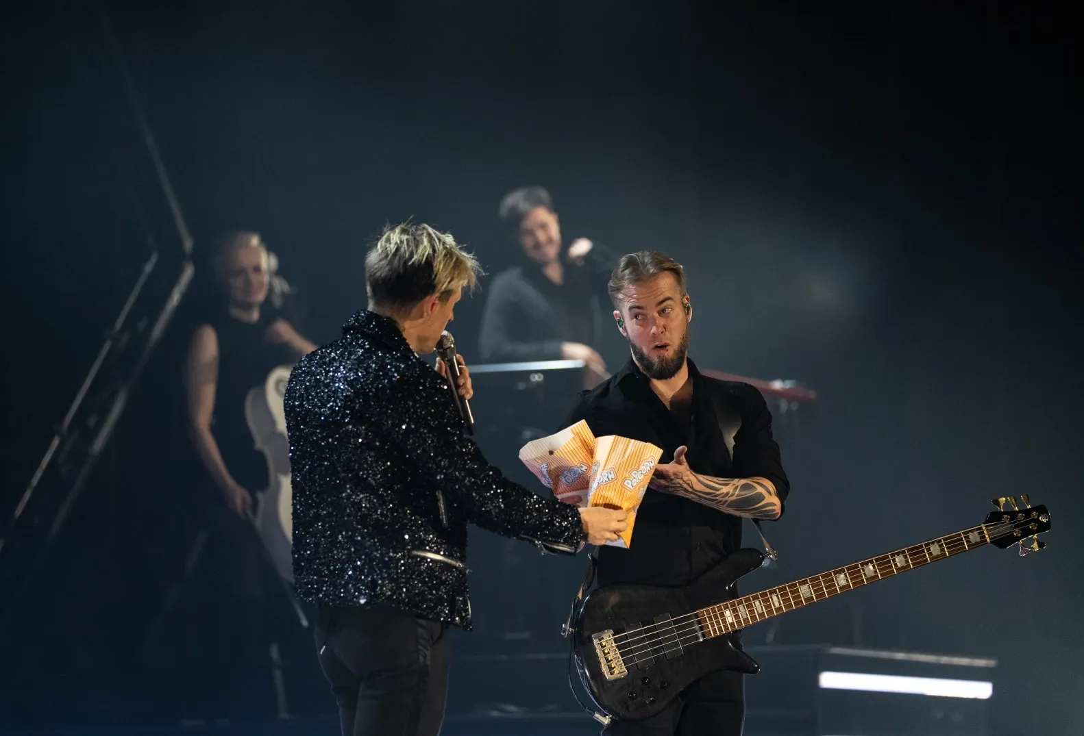 Während der Pause breitete sich ein feiner Duft von Popcorn in der Halle aus. Als der zweite Teil der Show begann, scherzte Billy darauf hin, dass er von dem süßen Geruch jetzt Appetit auf Popcorn bekommen hätte. Kurz darauf bekam er eine Tüte Popcorn aus dem Publikum gereicht, worauf er mit seinem Bassisten Ilja diskutierte, ob süß oder salzig das wahre Popcorn ist. Wir lassen die Entscheidung hier Mal offen… 🙂