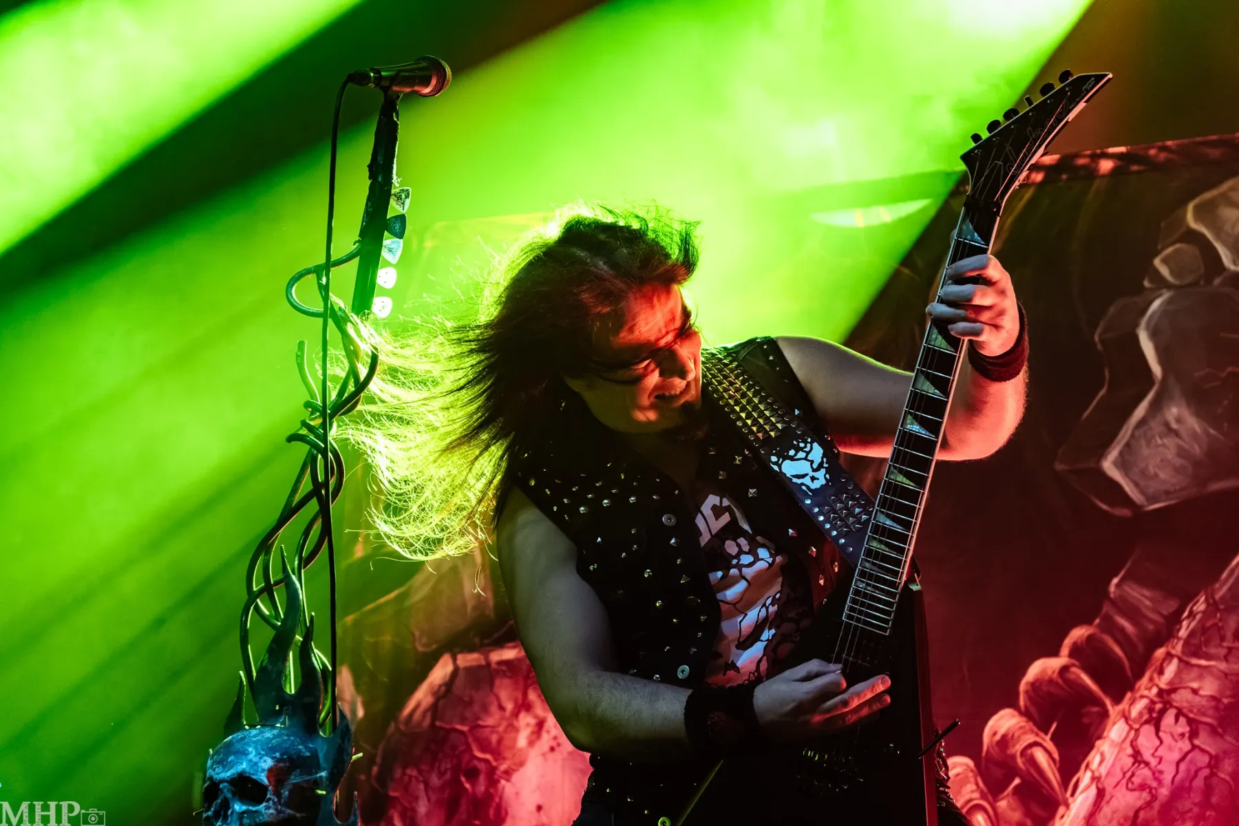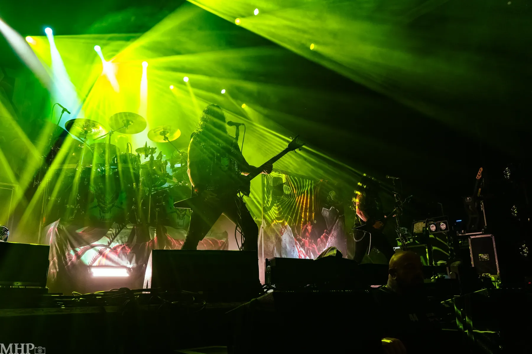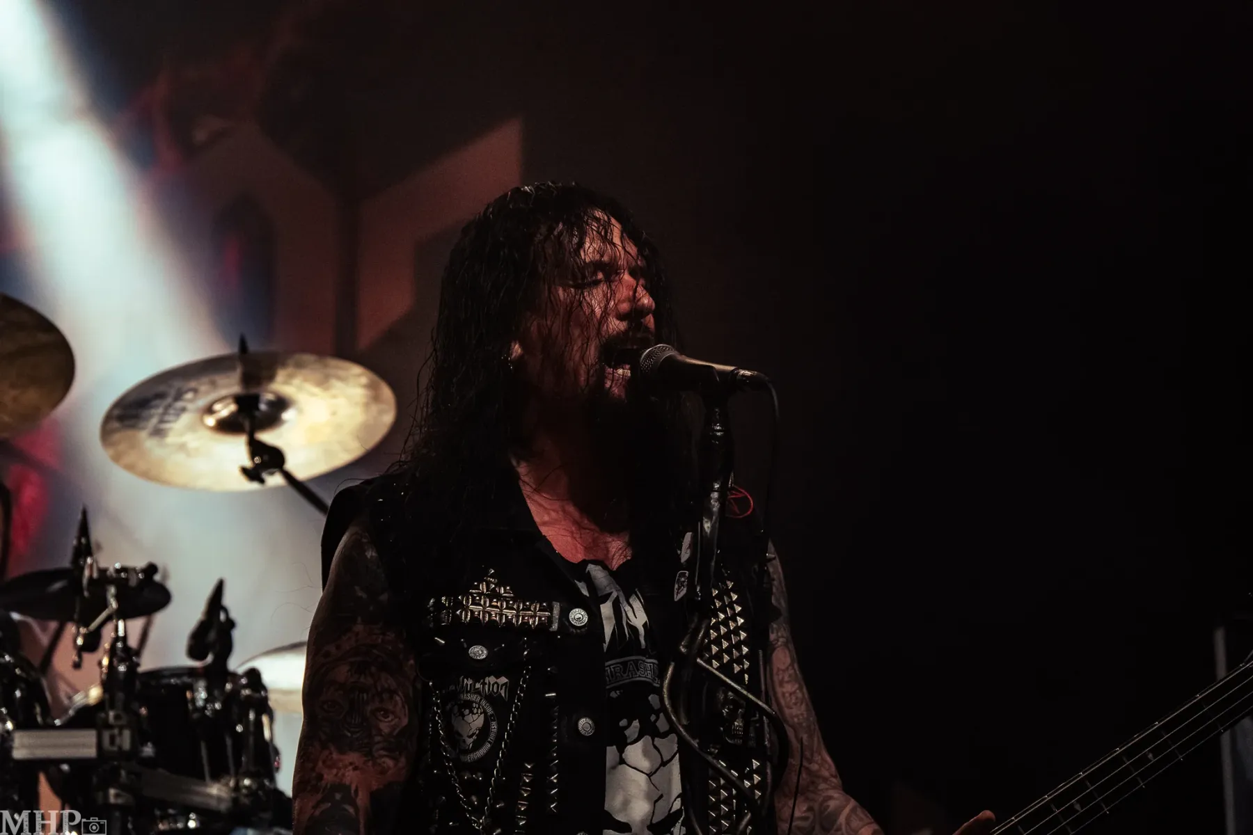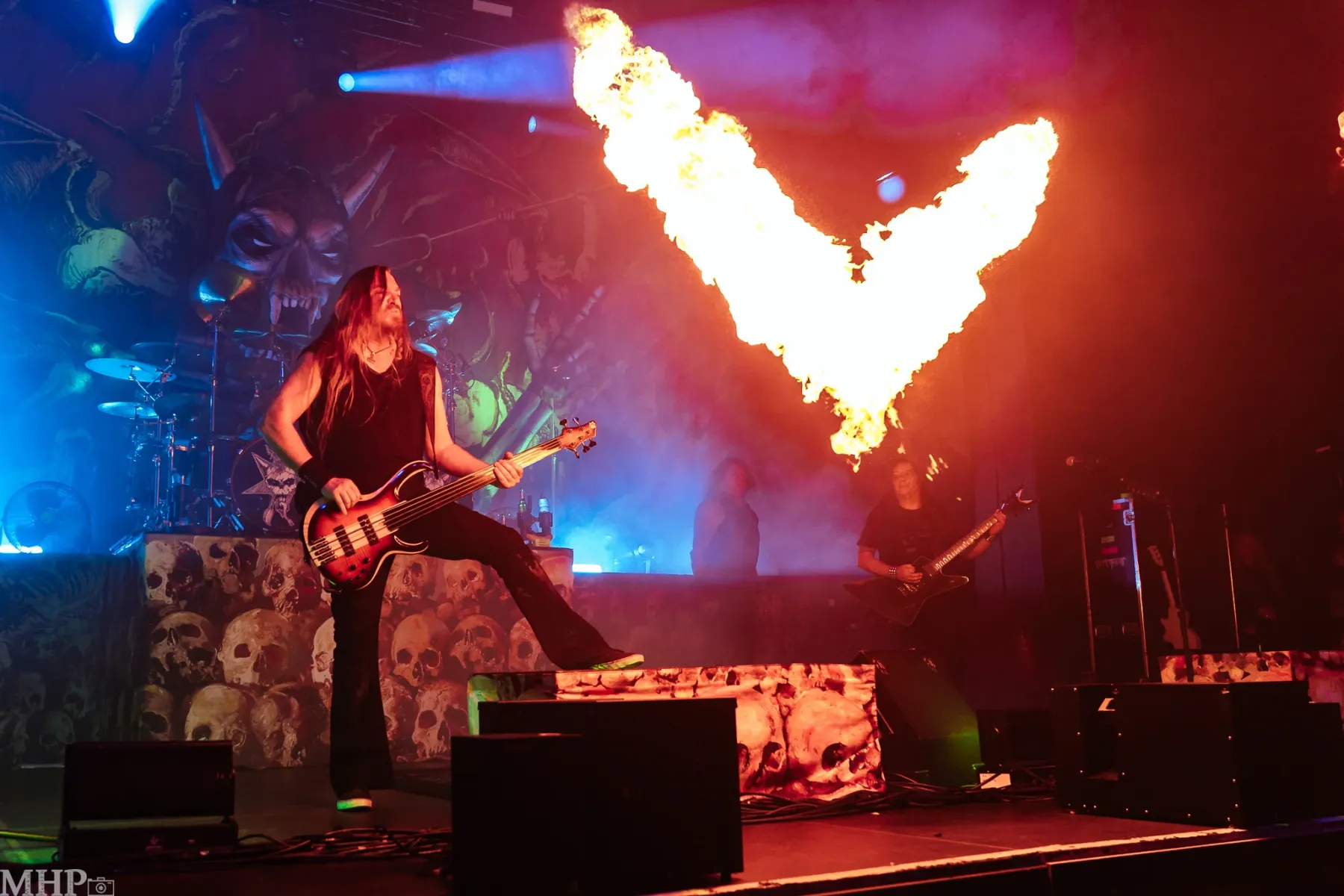 TESTAMENT führt uns schnell in die Anfänge ihrer Karriere mit dem schon fast hymnisch anmutenden ‚Practise what you Preach‘, und dem unerbittliche krachenden ‚Sins of Omission‘ – klassischer Oldschool-Thrash aus 1989. Chuck Billy ist einfach eine Erscheinung, wenn er sich vor dem Publikum aufbaut und mit seiner kräftigen gutturalen Stimme ins Mikrofon brüllt. Bekomme ich das Gänsehaut? Absolut. Die Setlist zeigt uns die Breite des Repertoires der Band – so ziemlich jedes Album von TESTAMENT ist hier vertreten.