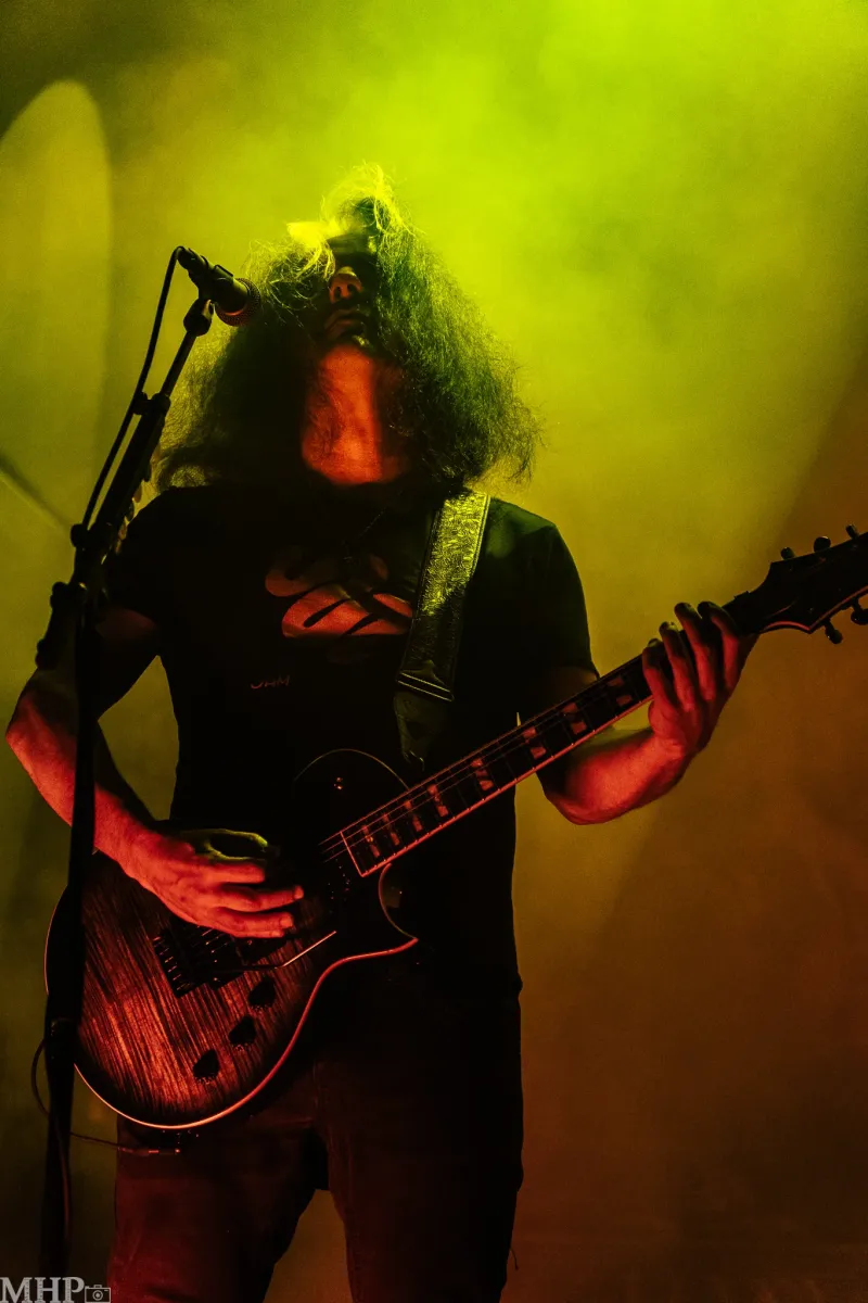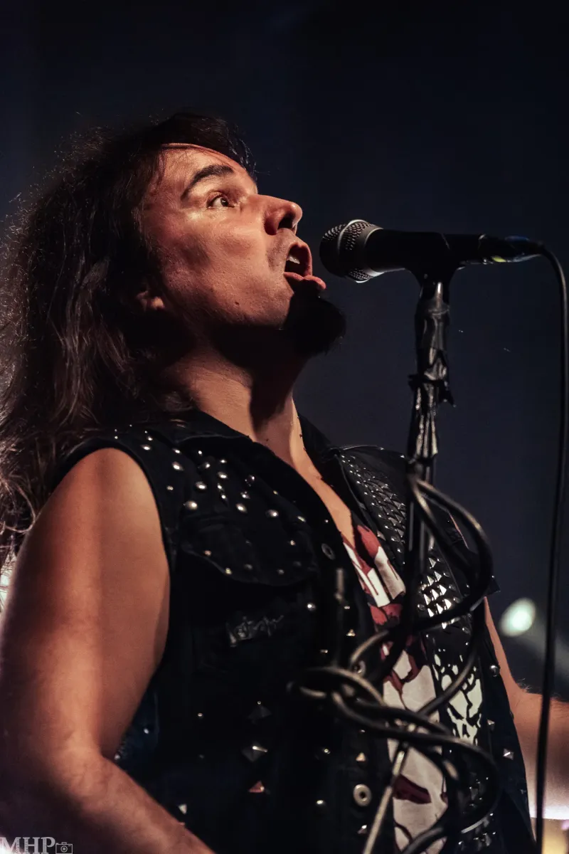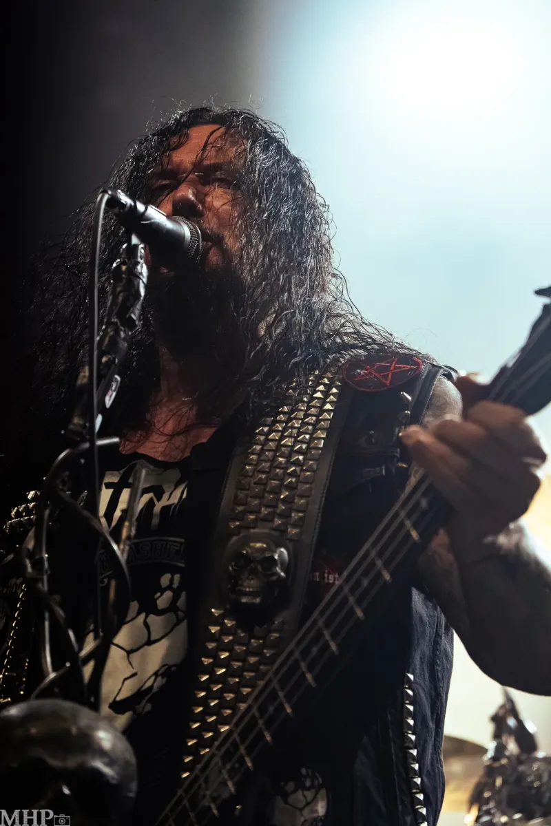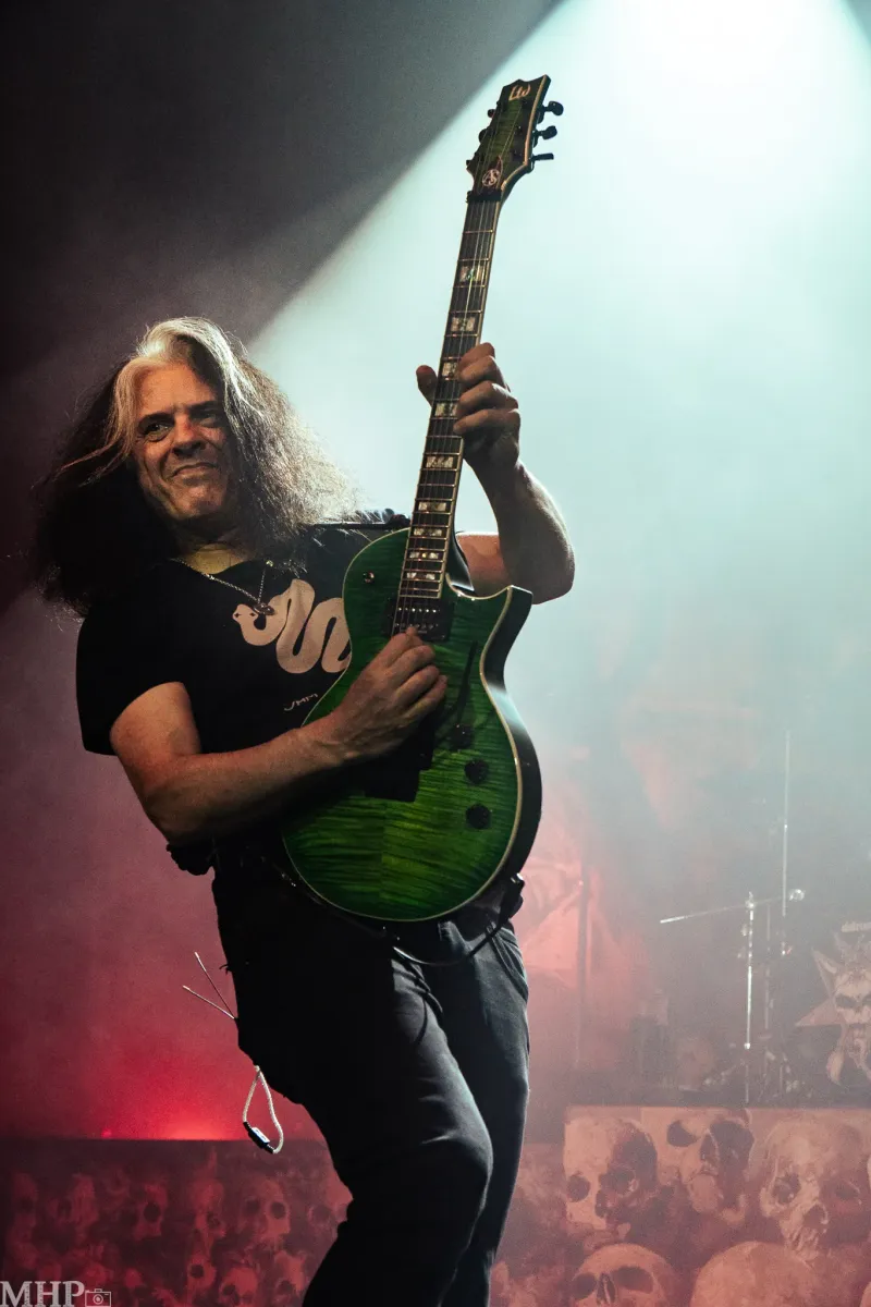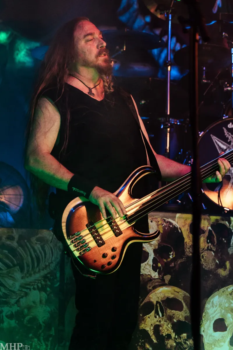 Den krönenden Abschluss dieser intensiven und energiegeladenen Nacht voller Thrash- und Death-Metal bildet keine Geringere als die legendäre Bay-Area-Band TESTAMENT. Schon während sich das riesige Banner vor der Bühne entfaltet, spürt man die Spannung in der Menge steigen. Das Publikum rückt enger zusammen, die ersten Pfiffe und Rufe nach den Thrashern aus Kalifornien hallen durch den Raum – und werden immer lauter. Dann beginnt das markante Intro von ‚D.N.R. (Do Not Resuscitate)‘ aus den Boxen zu dröhnen, die Lichter werden gedimmt – und im nächsten Augenblick fällt das Banner. Was folgt, ist ein explosiver Auftakt: TESTAMENT betreten die Bühne mit einer Wucht, die das Publikum augenblicklich in Bewegung versetzt.