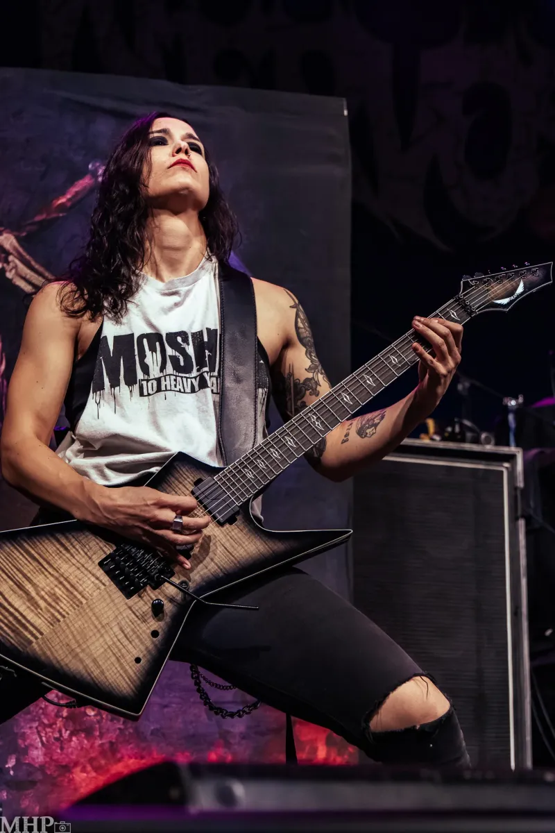 Wir starten mit ‚Seed of Death‘ vom aktuellen Album „Jailbreak“. Ebenso ist auch das düstere und harte ‚Behind the Wall‘ vom aktuellen Album zu hören. Dann nimmt sich die Sängerin kurz Zeit, mit dem Publikum zu sprechen, und widmet im gleichen Atemzug den folgenden Song ‚Kill the Silence‘ allen Opfern von Missbrauch – ein Thema, das der Band sehr am Herzen liegt. NERVOSA spielt zwar nur ein 30-minütiges Set im Rahmen der Thrash Of The Titans Tour, aber sie nutzen wirklich jeden Moment davon und spielen mit Routine, Können und Leidenschaft. Ihr melodiöser und starker Mix aus Death und Thrash kommt besonders überzeugend rüber, durch zwei Songs aus „Perpetual Chaos“ (ihrem Album aus 2021). Darunter der gleichnamige Titeltrack – der mein persönlicher Favorit ist- nein, auch ‚Venomous‘, ein schnelles, schweres und kompromissloses Stück, das macht ordentlich Stimmung.