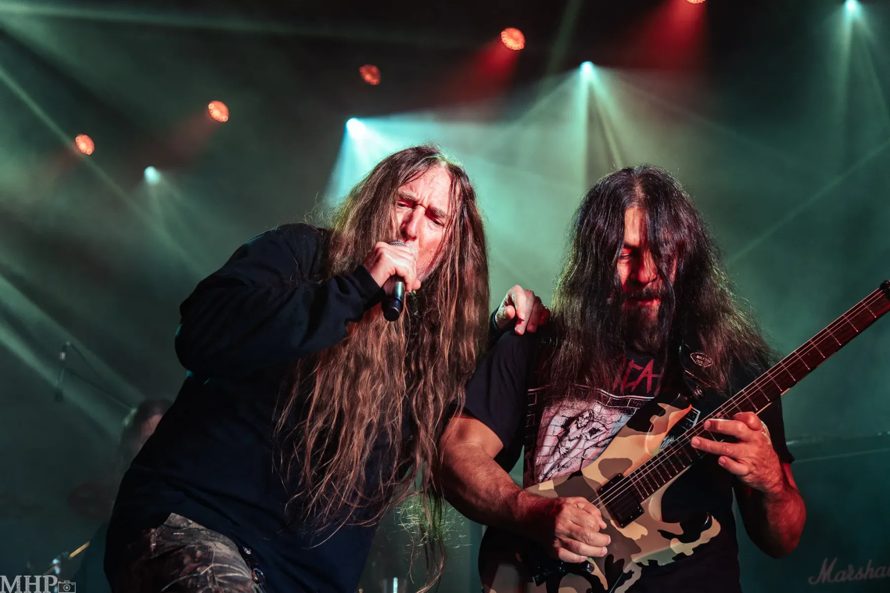 Den Abschluss der „Cause of Death“-Hommage bildet ‚I’m in Pain‘ vom 1992er Album „The End Complete“, bevor die Menge ein letztes Mal all ihre verbleibende Energie mobilisiert – denn als die unverkennbaren ersten Töne von ‚Slowly We Rot‘ vom gleichnamigen Debütalbum von 1989 erklingen, gibt es endgültig kein Halten mehr. Was folgt, ist ein chaotischer, zugleich grandioser Höhepunkt des Abends: eine absolute Death-Metal-Hymne, deren bedächtiges Tempo und Tardys qualvoll klingender Gesang den Schlachthof in Wiesbaden in ein Meer aus Emotionen verwandeln.