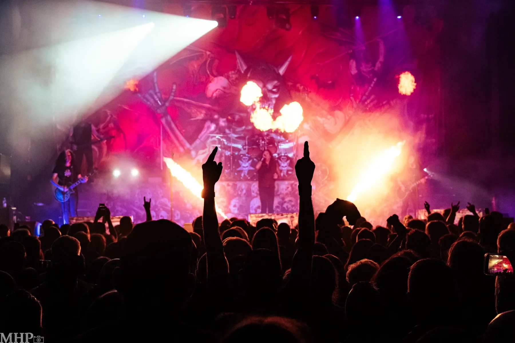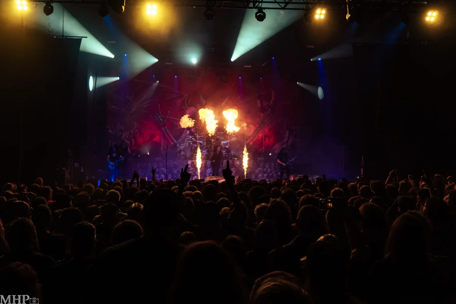 Dieses Line-up heute oder? Mein Energielevel ist irgendwo zwischen „Ich will mehr“ und „Wo ist das nächste Sauerstoff Zelt“ – und wenn man sich hier so in der Halle umschaut, sehen die Leute auch ziemlich zufrieden aus. Wie könnten sie es auch nicht sein? Natürlich hört man, wie auf fast jedem Metalkonzert, den ein oder anderen Metalhead, der meint „dass Band XY im Jahre Anno dazumal besser war“ aber es würde sich fast falsch anfühlen, wenn sie nicht zugegen wären. Wie ich vom Fotografen meine Vertrauens hören konnte, wird es wohl auch Pyro geben. Ich zweifel langsam die Wahl meines Outfits an, da es nun ohnehin zu spät für Überlegen und Meckern ist, kommen wir nun erneut zu den wichtigeren Dingen: zur Musik.